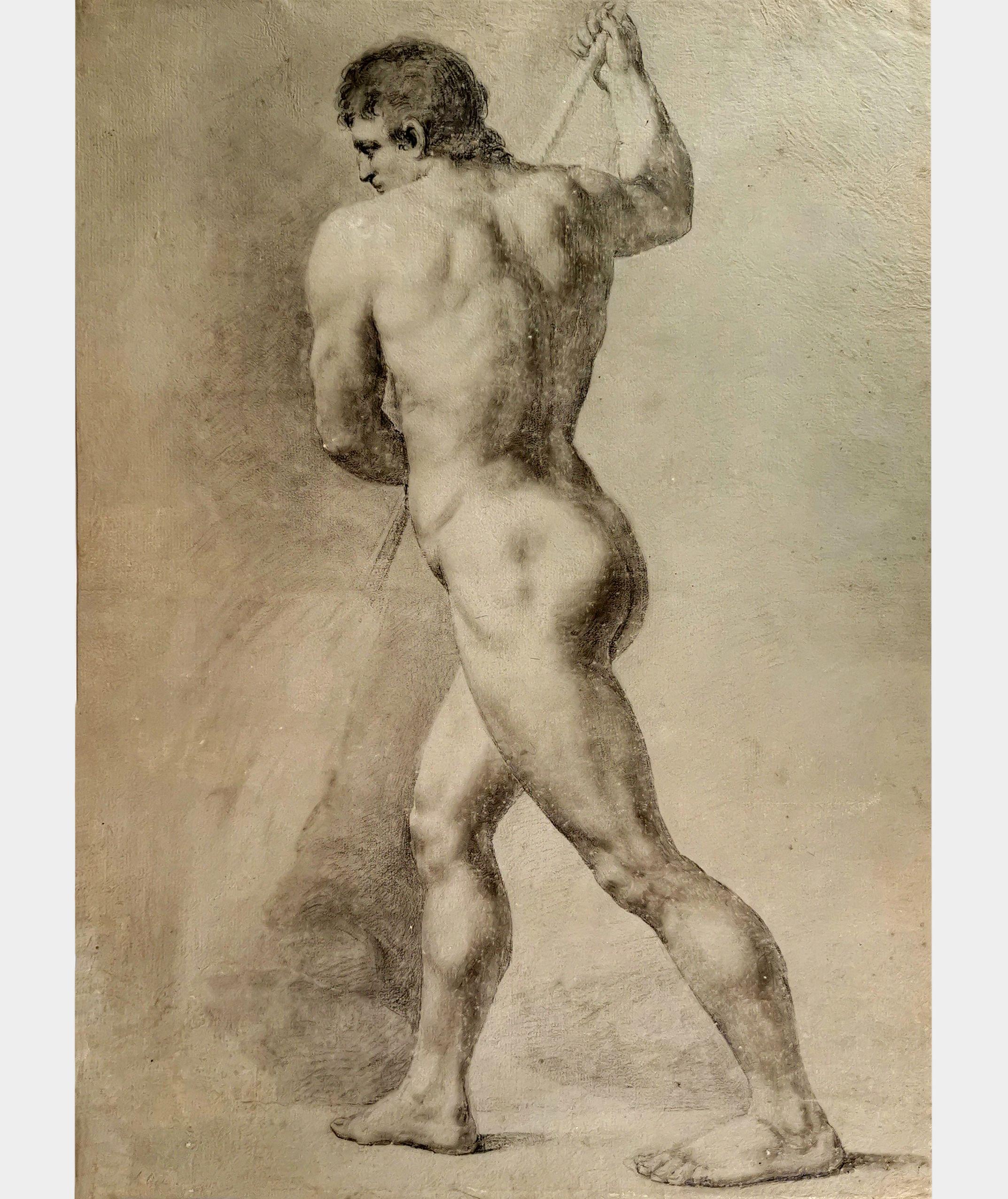 Etude académique d'homme, mine de plomb et fusain sur papier, 53x38 cm