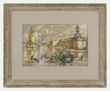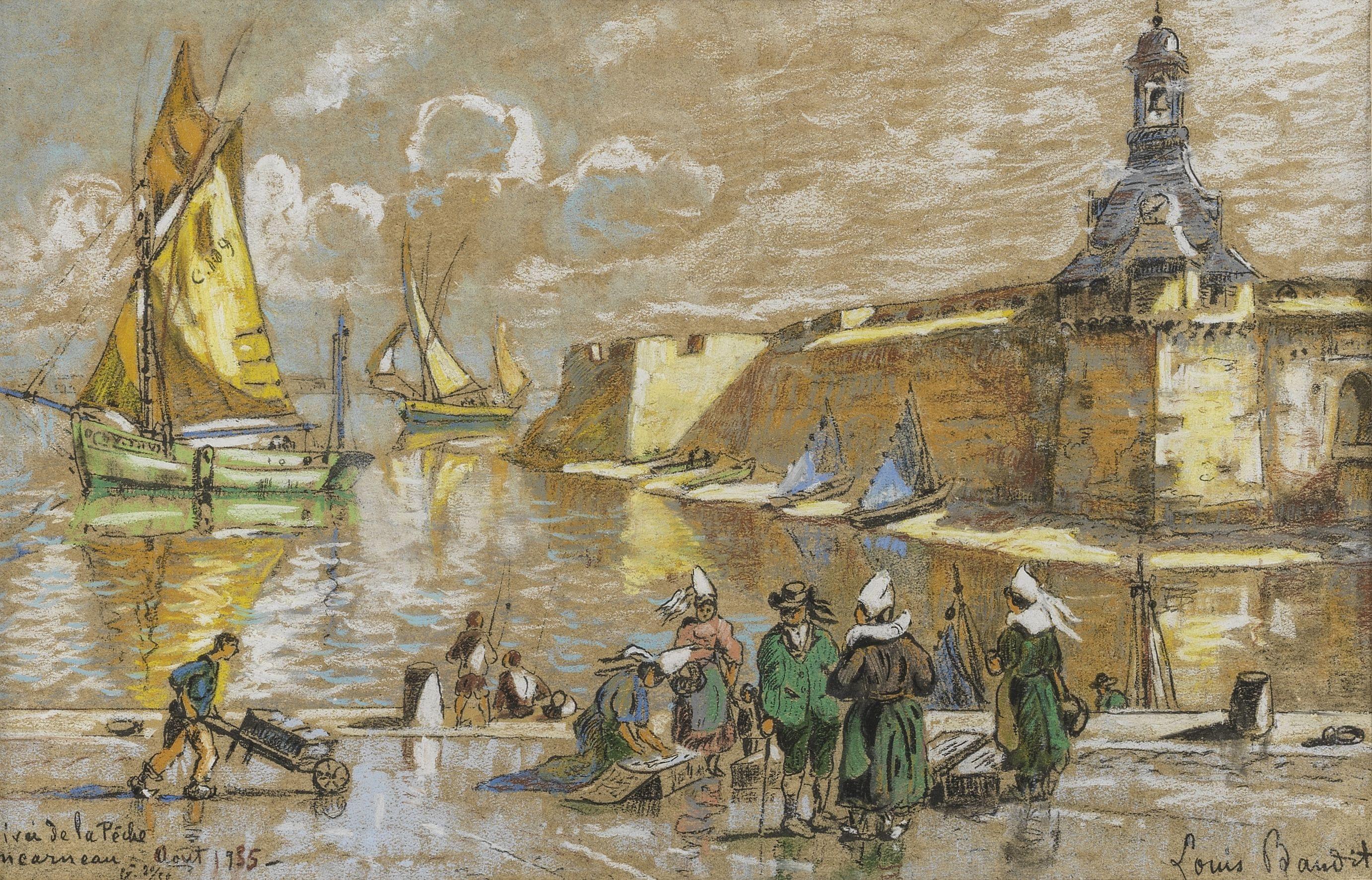 Concarneau, pastel et fusain sur papier, signé et daté août 1935, 46x30 cm