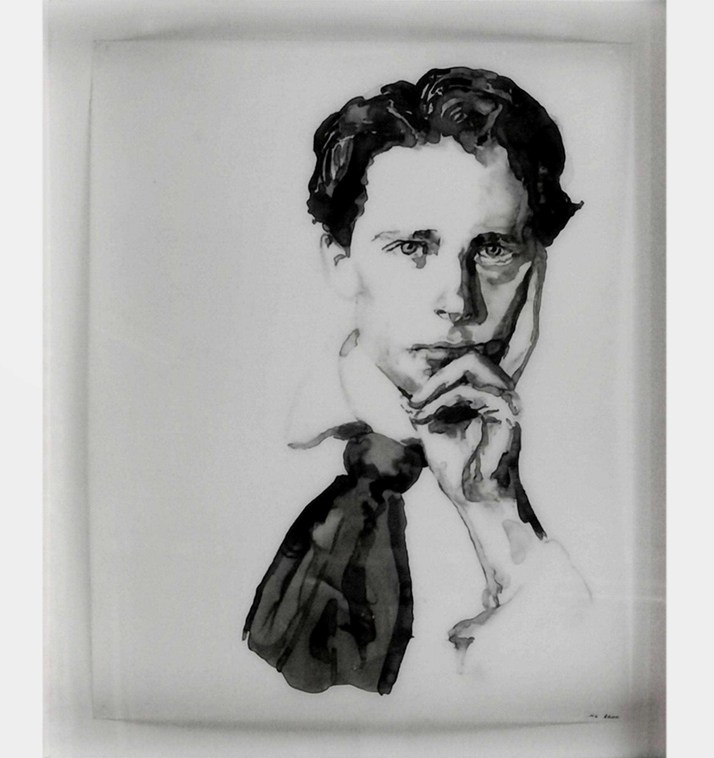 Composition à la ligne verte, huile sur toile, signée au dos, 40...