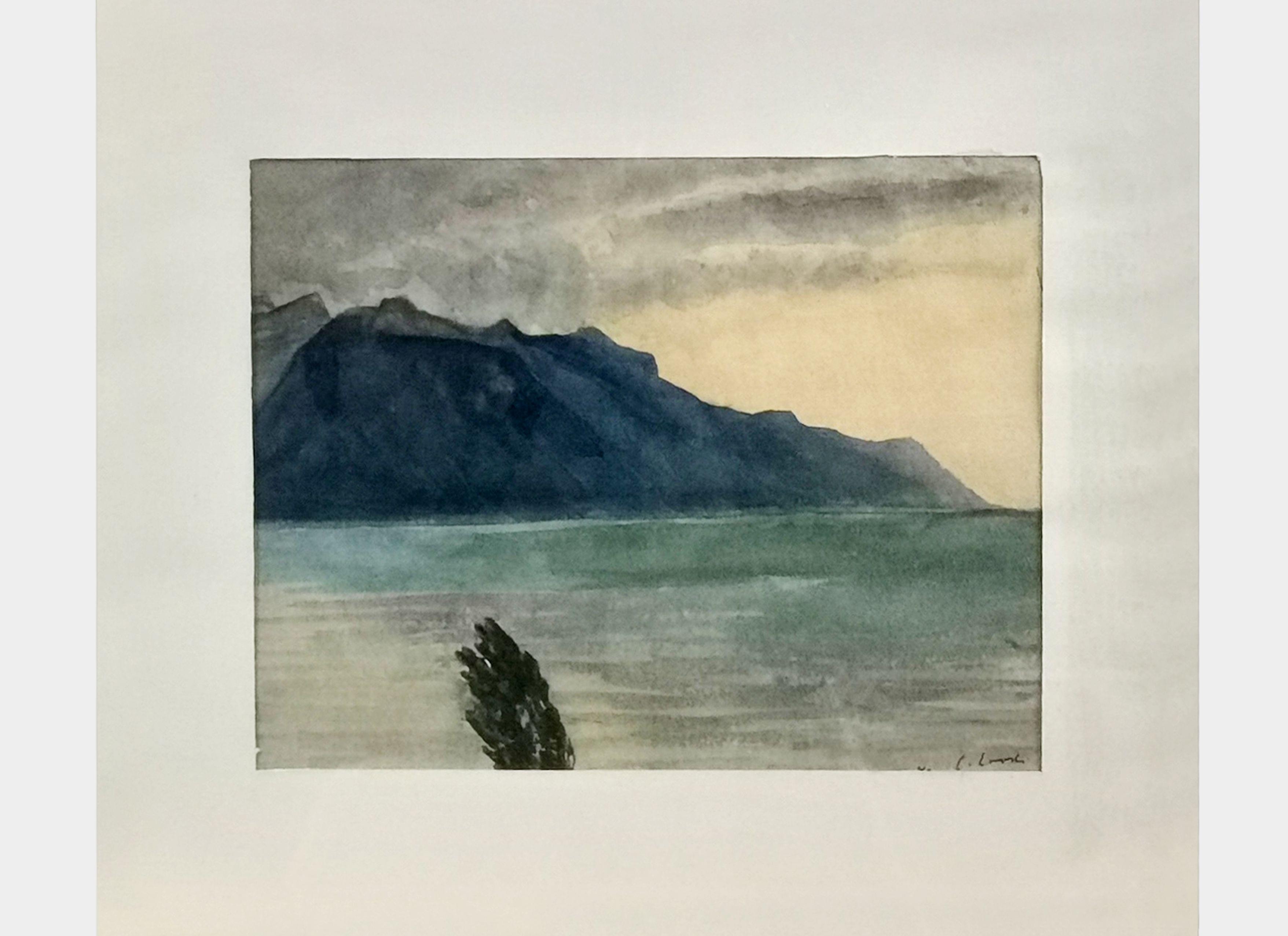 Vue du lac Léman depuis Montreux, aquarelle sur papier, signée, 18x23 cm