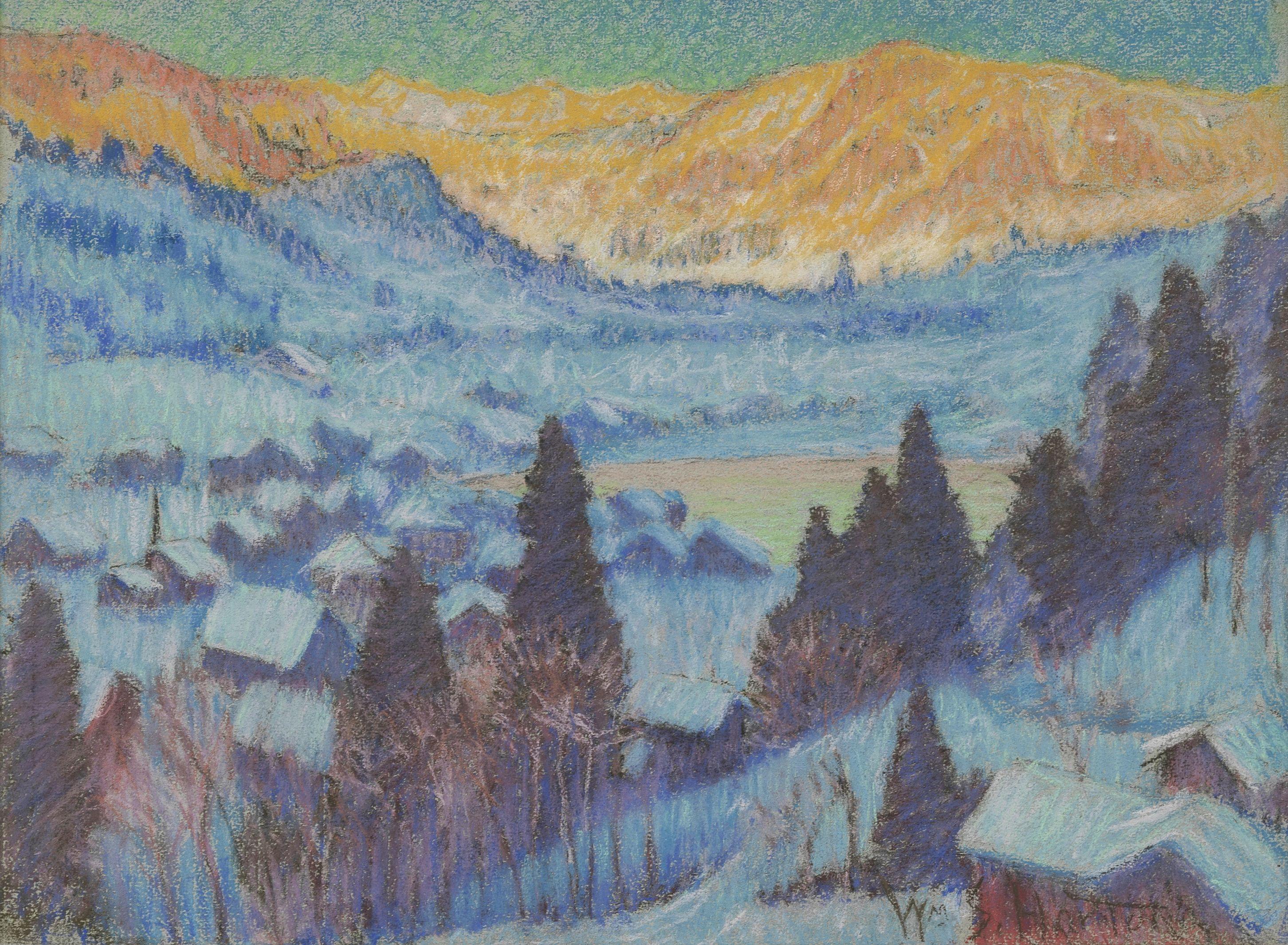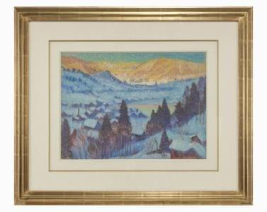Paysage de montagne, pastel sur papier, signature illisible, 40x54 cm