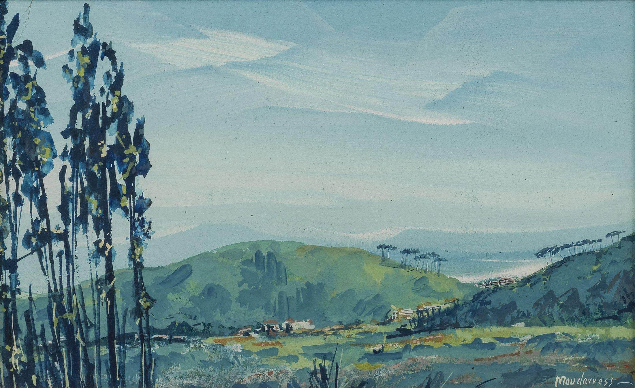 Paysage, aquarelle et gouache sur papier, signé, 15x24 cm