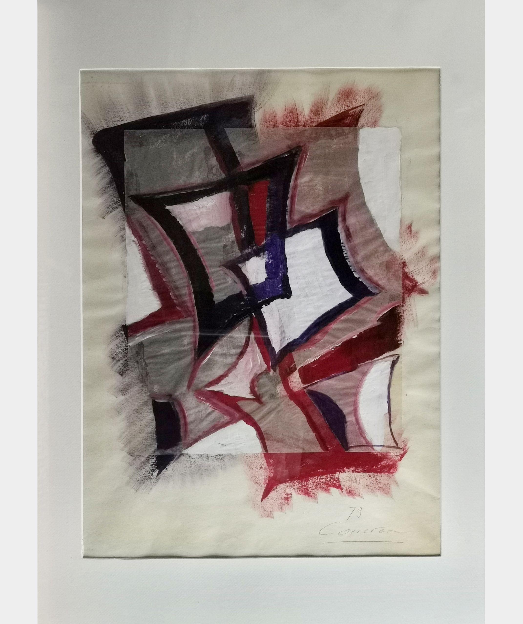Composition, mine de plomb et aquarelle sur papier, signé et daté 79, 50x40 cm