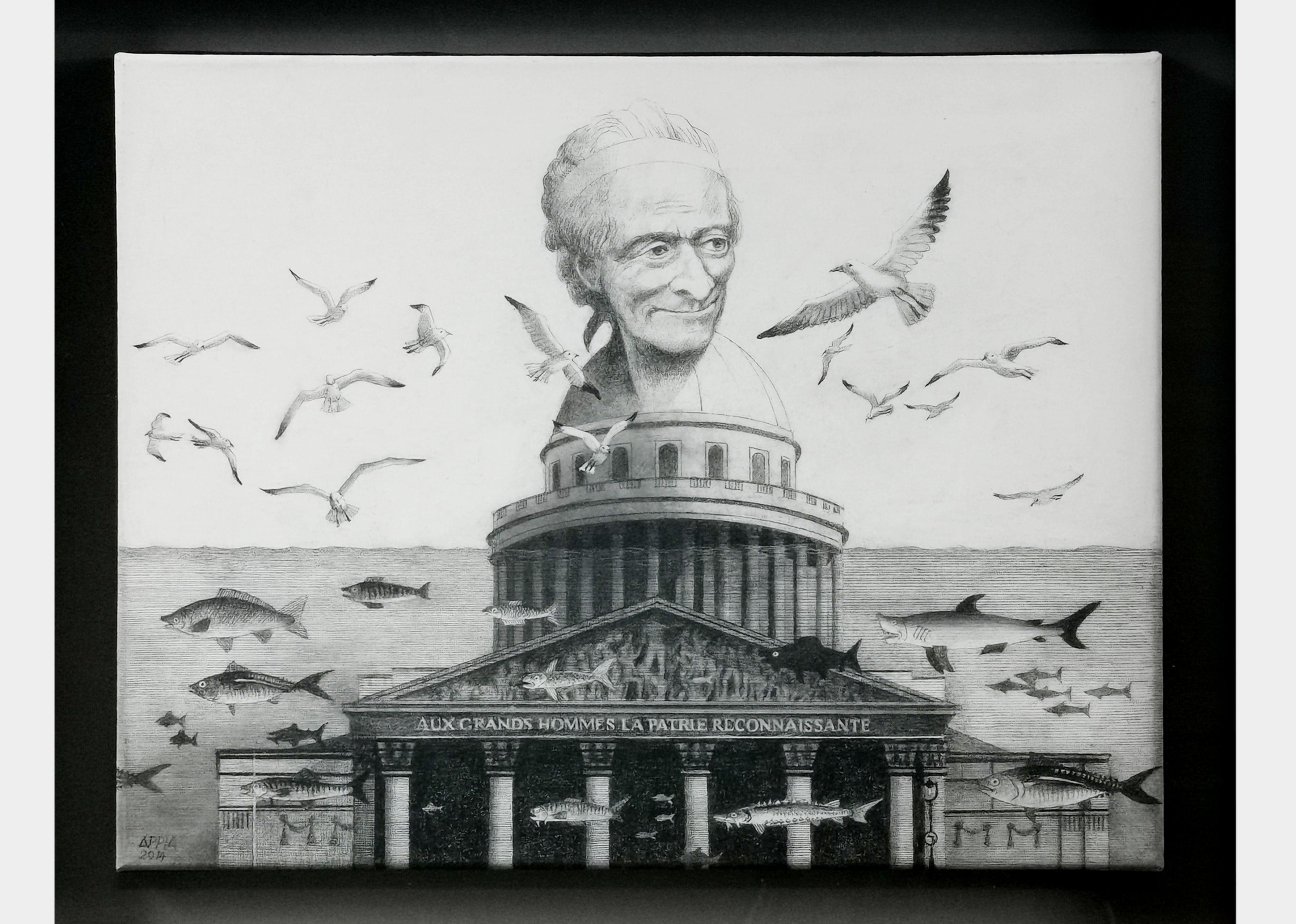 Voltaire, rue Soufflot ou concession à perpétuité, crayon sur toile, 2014, 33x40 cm. Provenance: collection privée genevoise