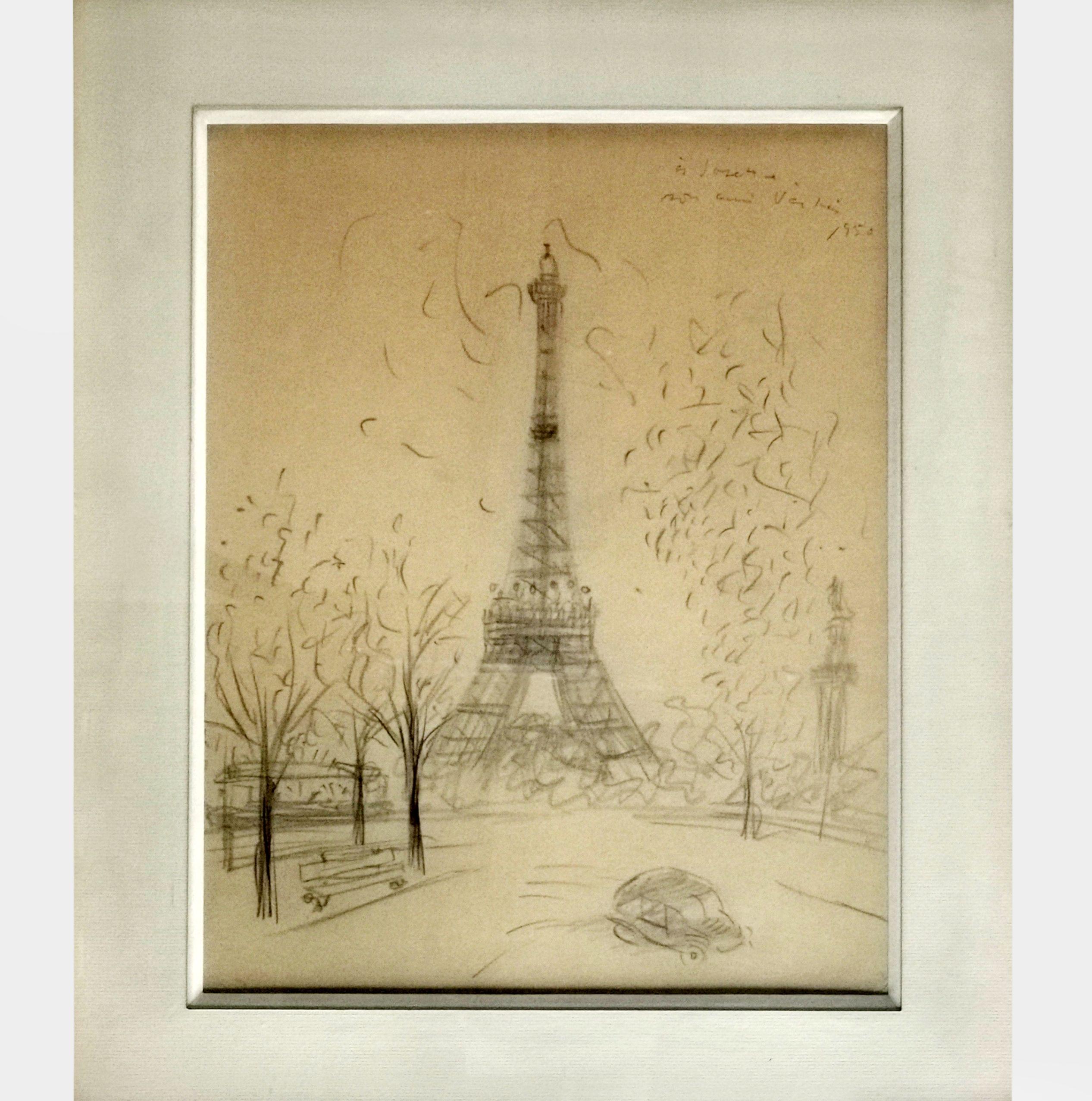 Tour Eiffel, crayon, signé, 42x33 cm