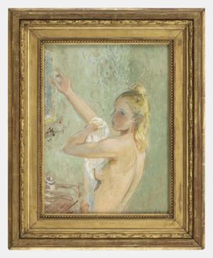 Femme blonde à sa toilette, pastel et gouache sur carton, 48x35 cm