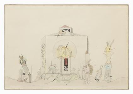 Sans titre, mine de plomb et crayon de couleur sur papier, signé et daté 73, 39x56 cm