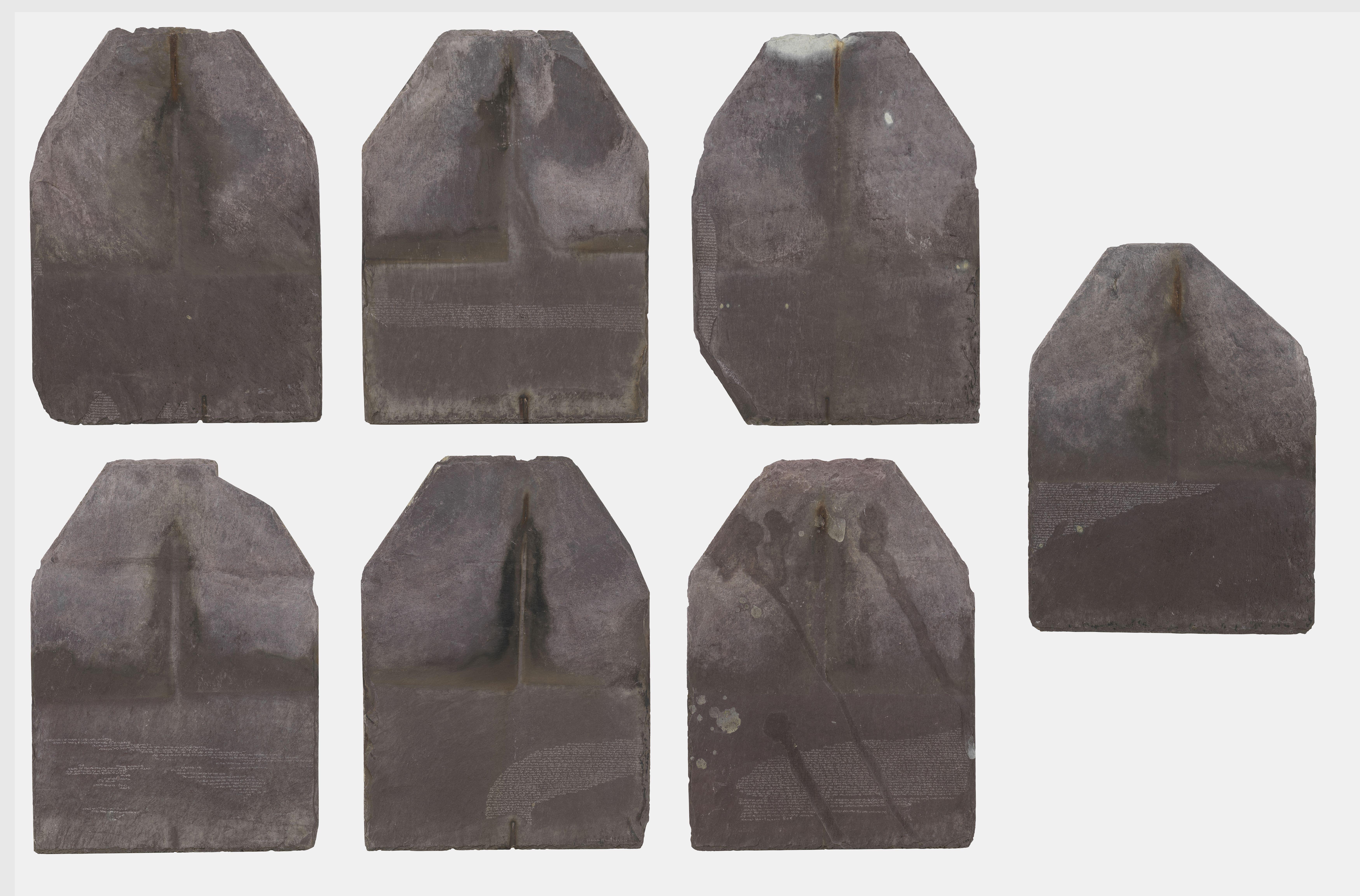 Suite de sept ardoises gravées d'inscriptions, 30x22 cm. Provenance: collection privée genevoise