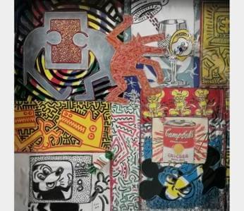 Blue Multi Tags, aérosol sur toile, signé au dos, 124x66 cm. On...