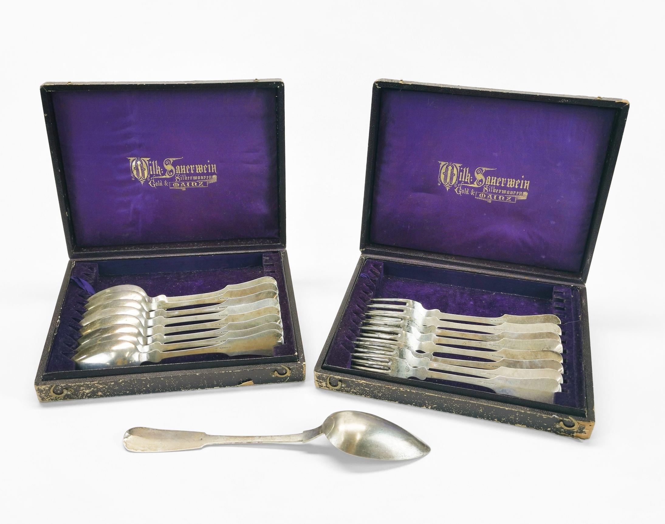 94. Suite de 6 fourchettes et 6 cuillères chiffrées