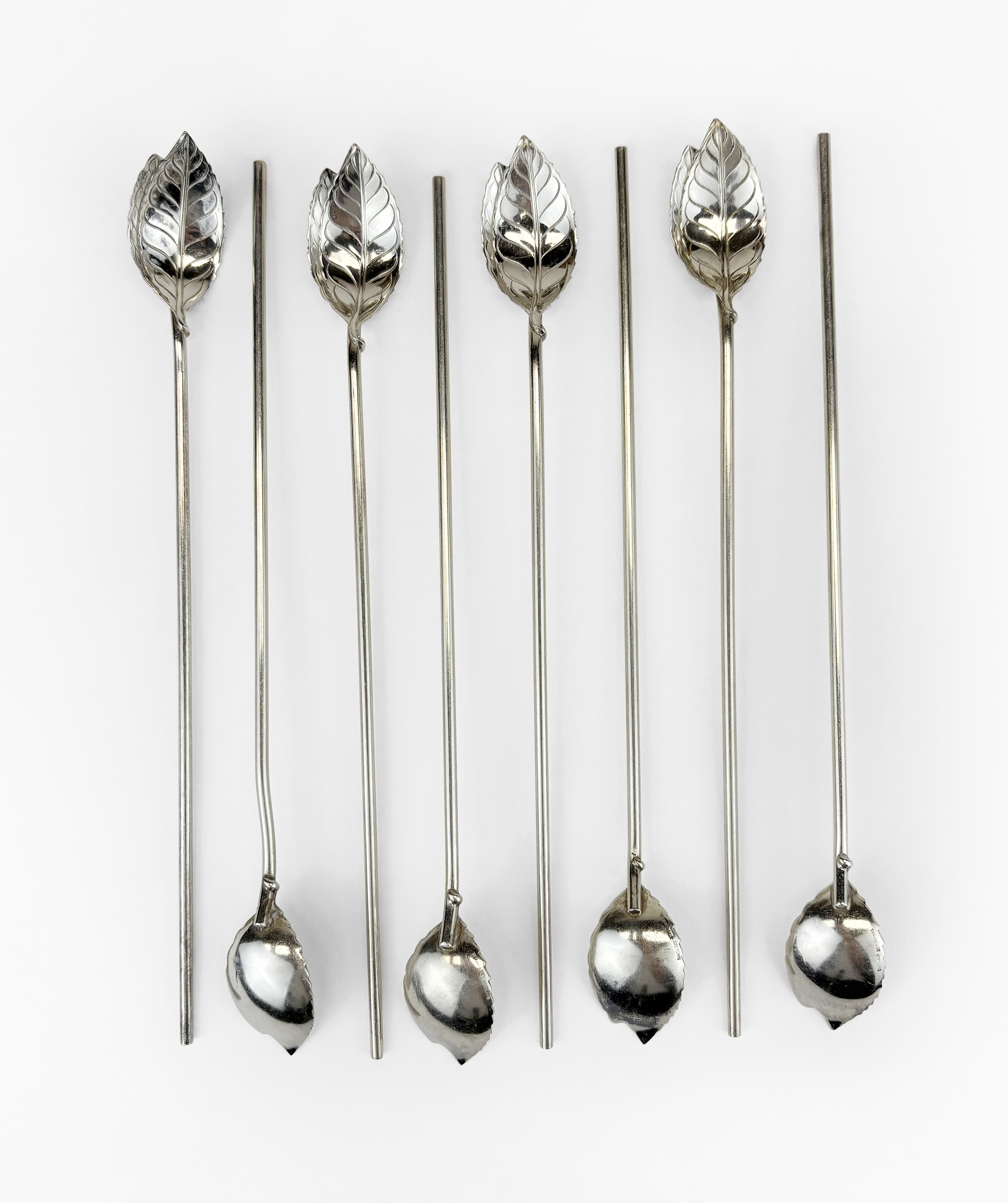 3730. Tiffany, suite de 8 cuillères paille à cocktail feuille