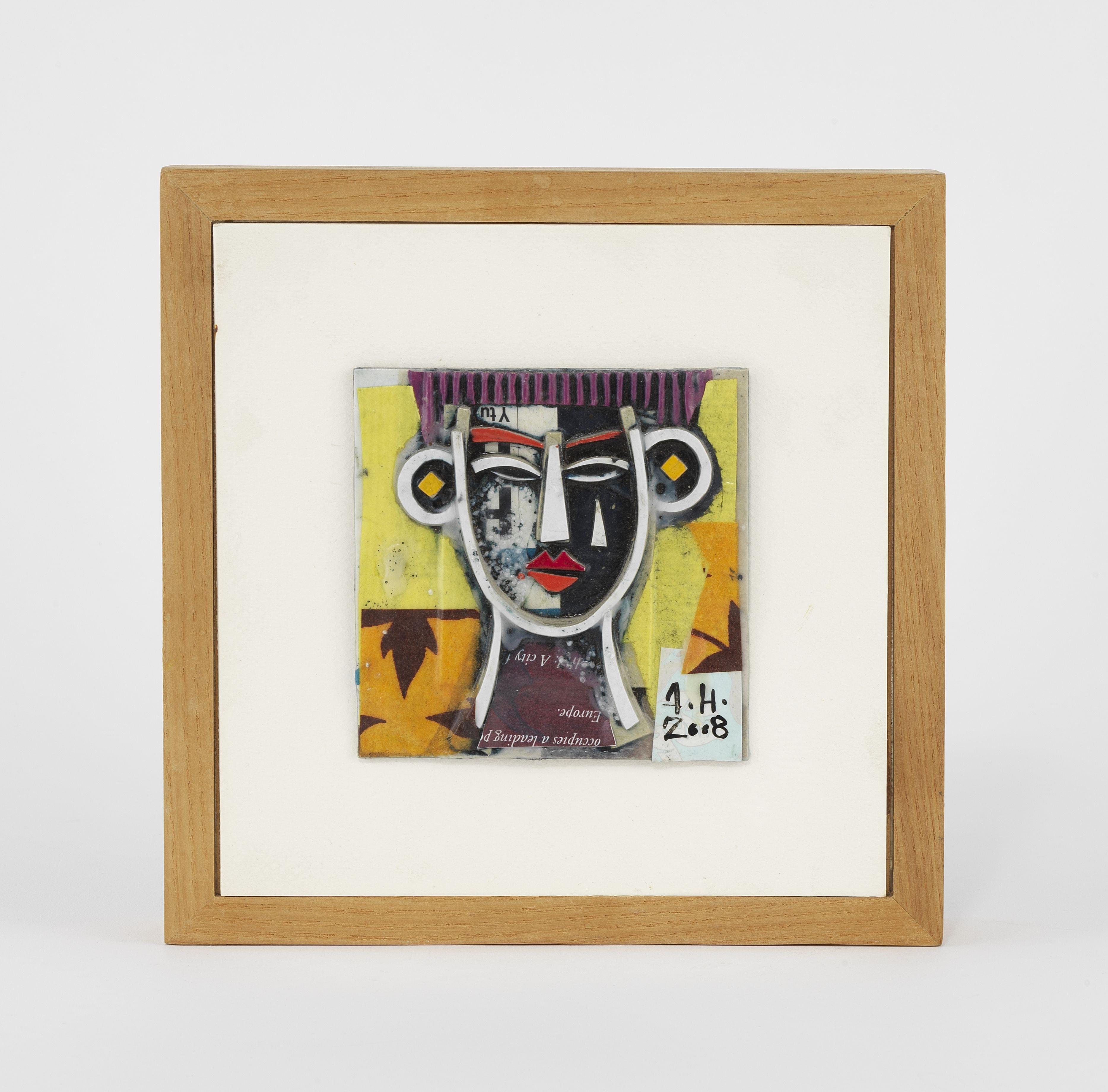 Cabeza de Mujer, collage, monogrammé et daté 2008, 10x10 cm