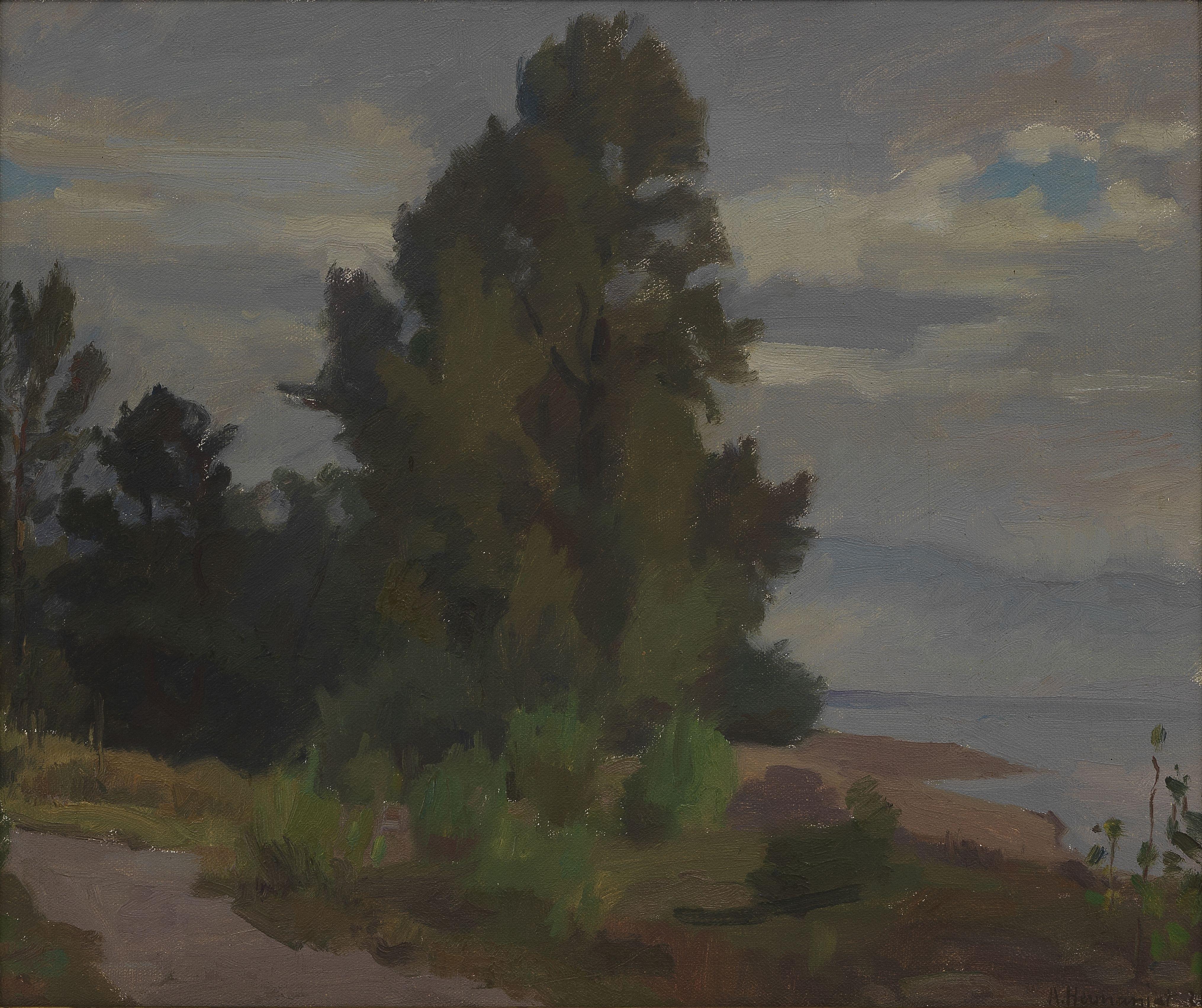 Bord de lac à Allaman, huile sur toile, signée, 38,5x46 cm