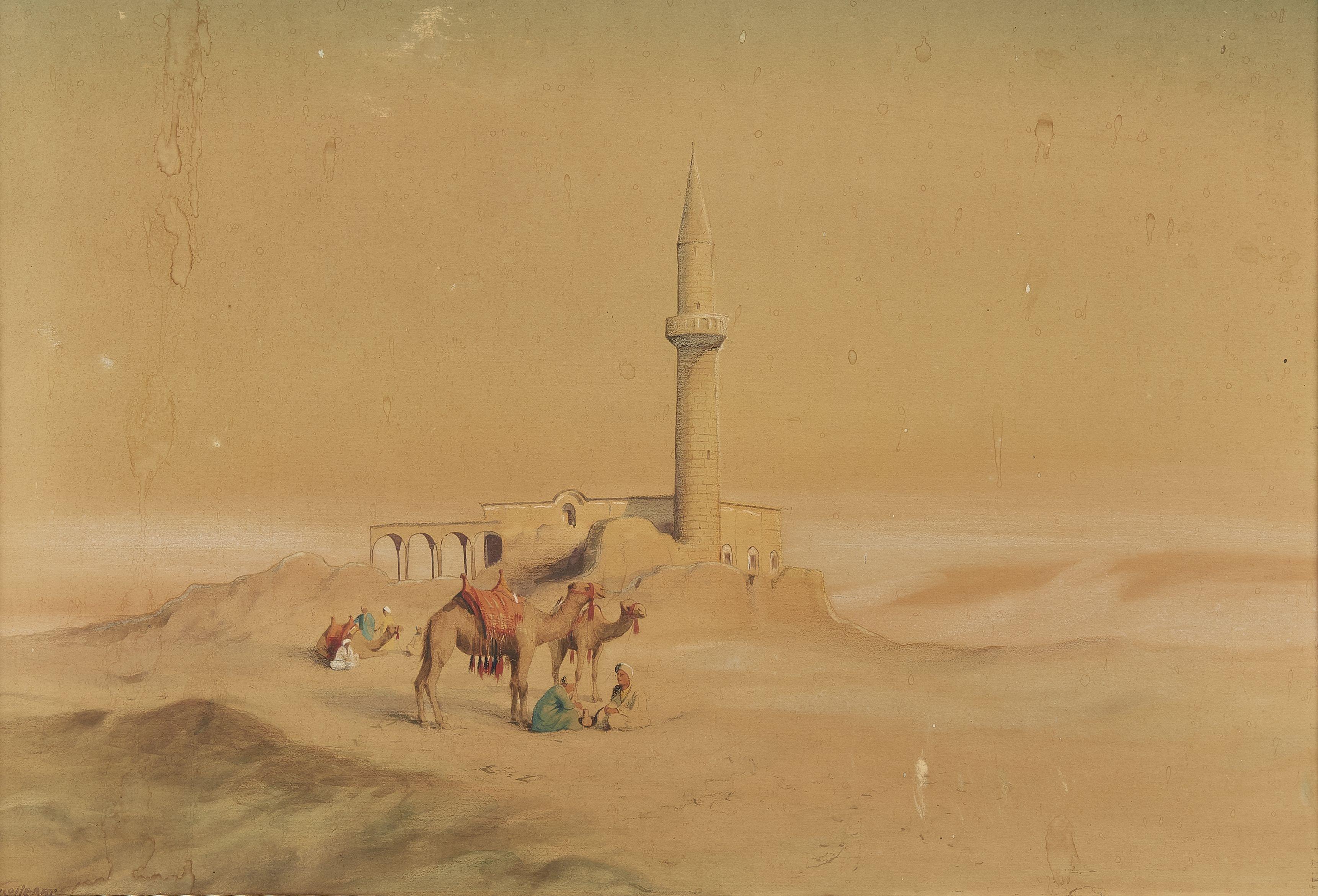 Vue de Neuchâtel de l'Est, gravure gouachée et aquarellée, datée...