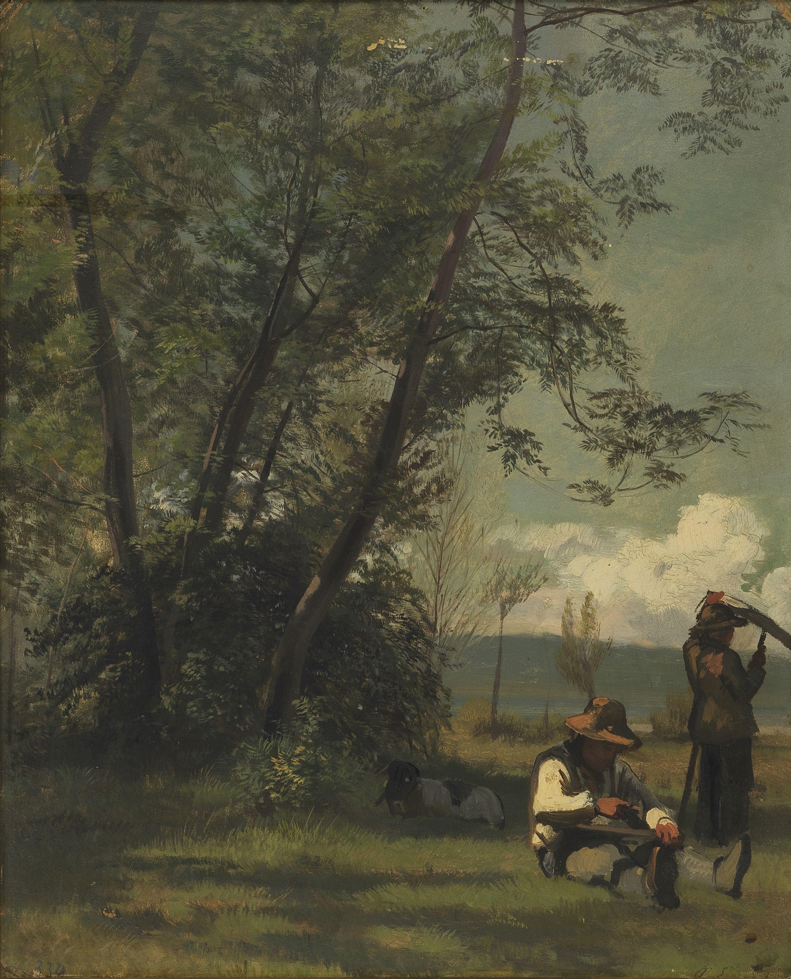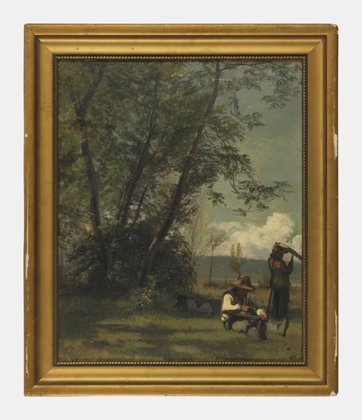 Vue du lac, huile sur toile, signée et datée 1911, 43x55 cm