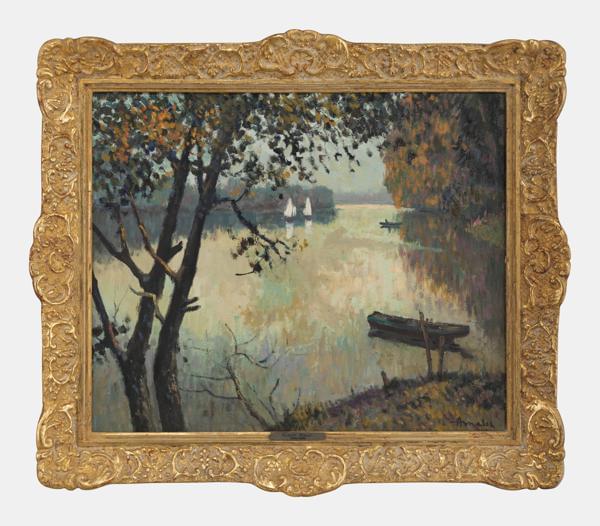 Vue du lac, huile sur toile, signée et datée 1911, 43x55 cm