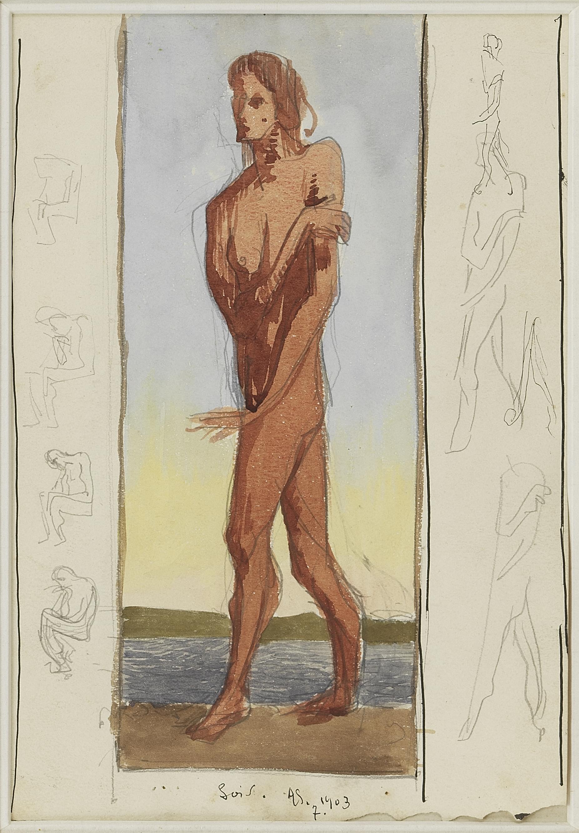 Soir, aquarelle sur papier, monogrammée et datée 1903, 25x17 cm