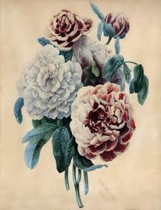 Paire de bouquets de fleurs, deux aquarelles sur papier, signées et datées 1841 et 1849, 35x27 cm