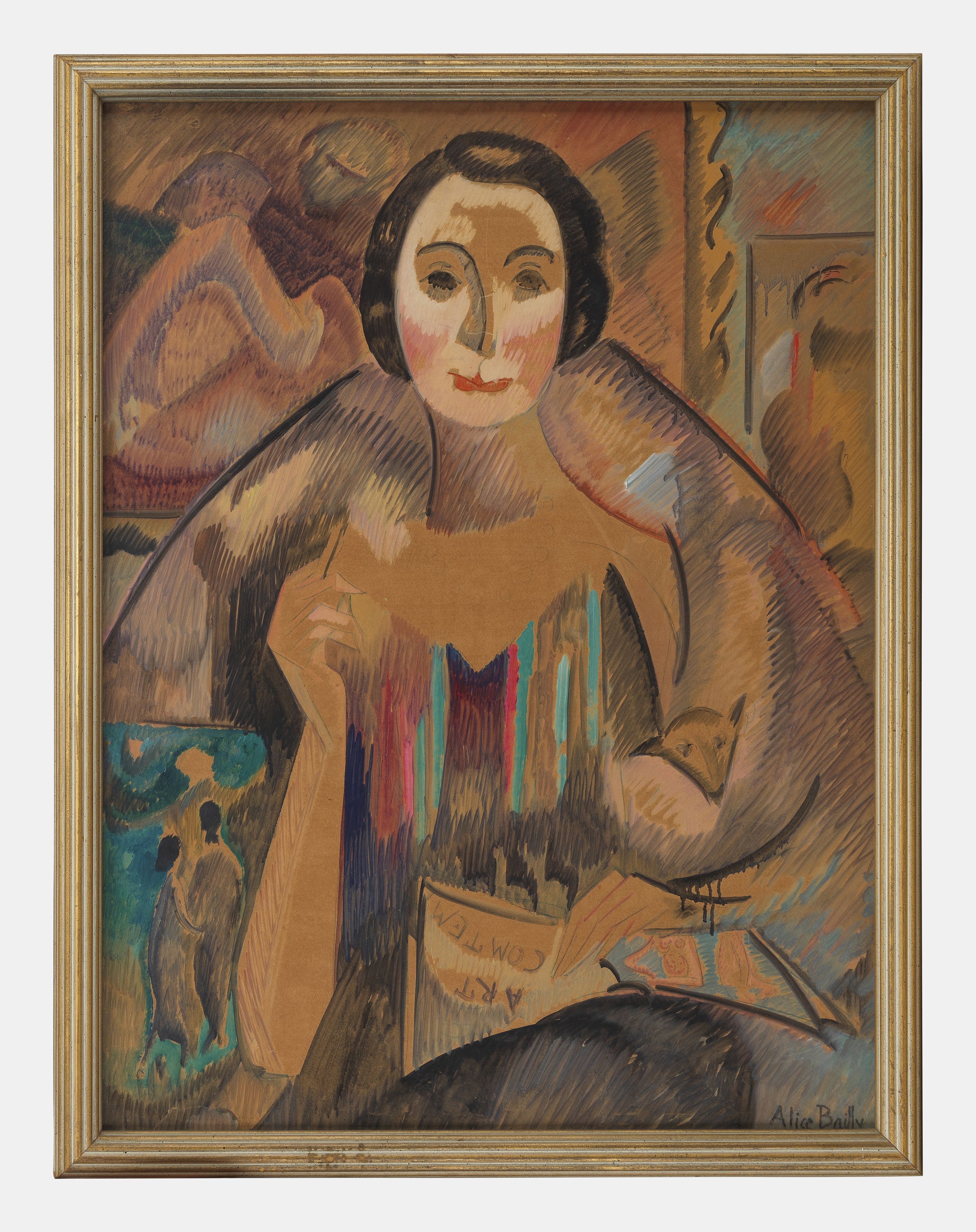 Jeune femme assise à la robe rose, gouache sur papier, signée, 7...