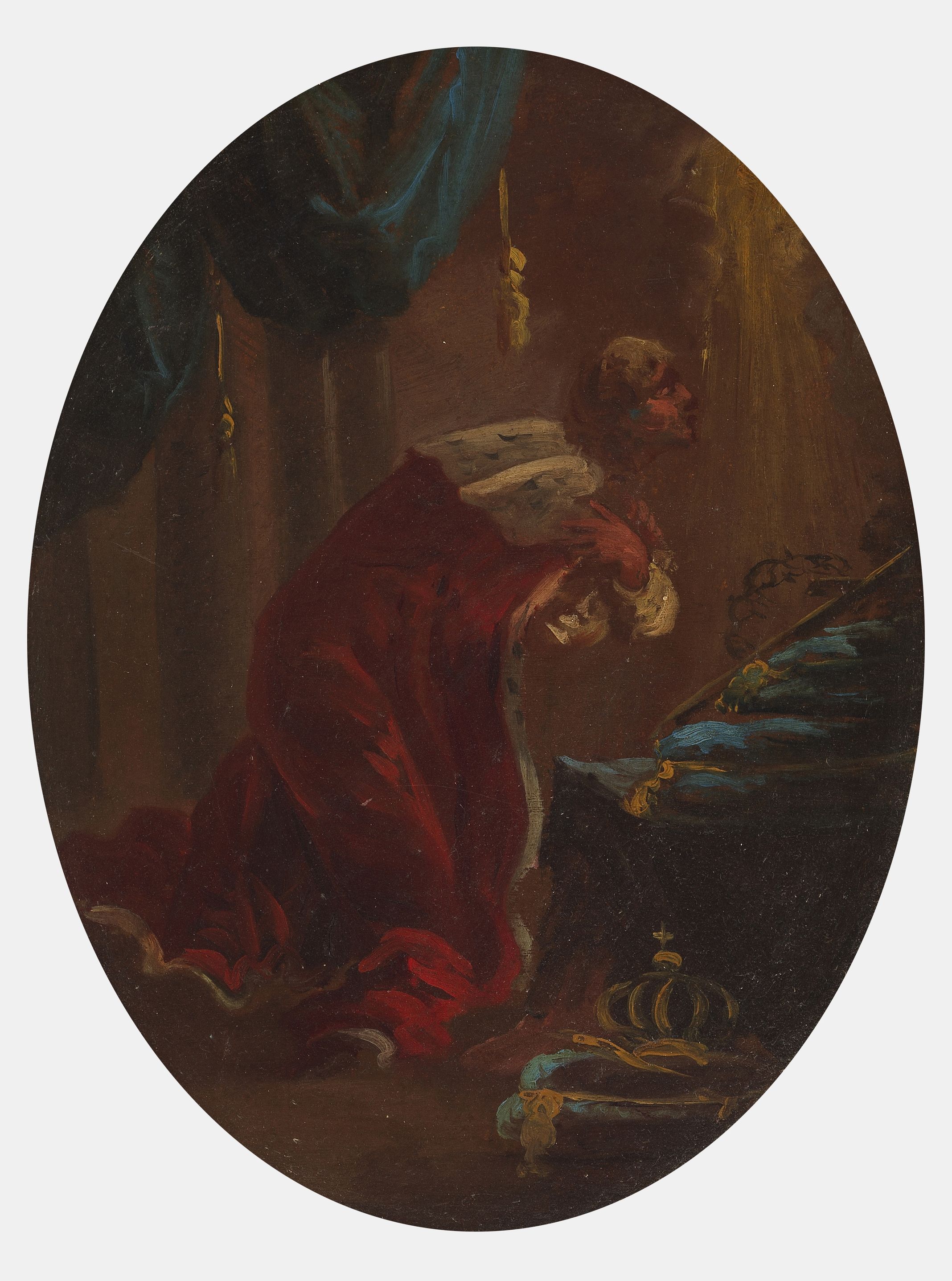 Saint Augustin et Saint Louis, paire d'huiles sur toile ovales, 30,5x24,5 cm. Provenance: ancienne collection János Scholz, puis par descendance.
