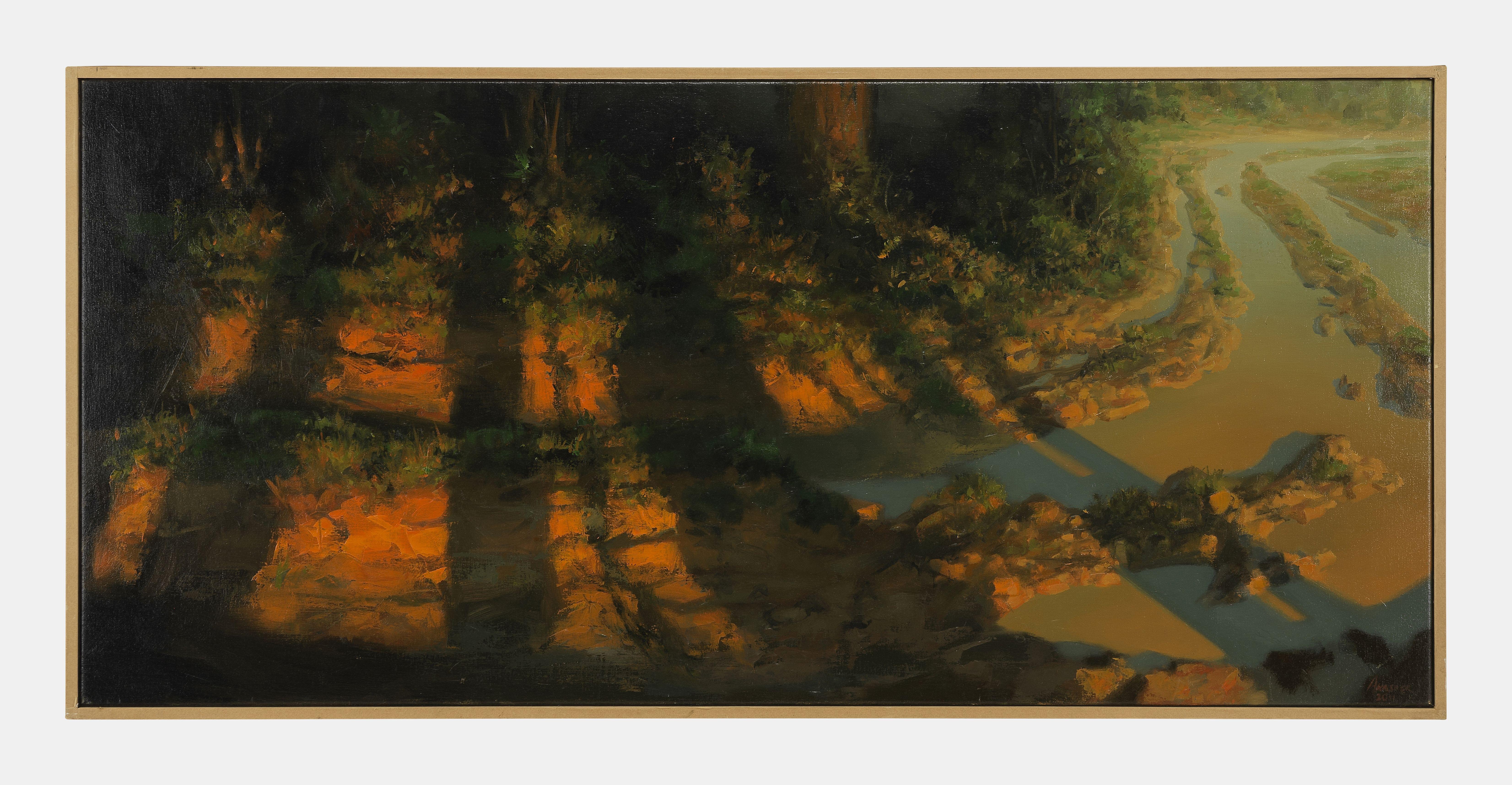 Paysage, huile sur toile, signée et datée 2011, 55x120 cm