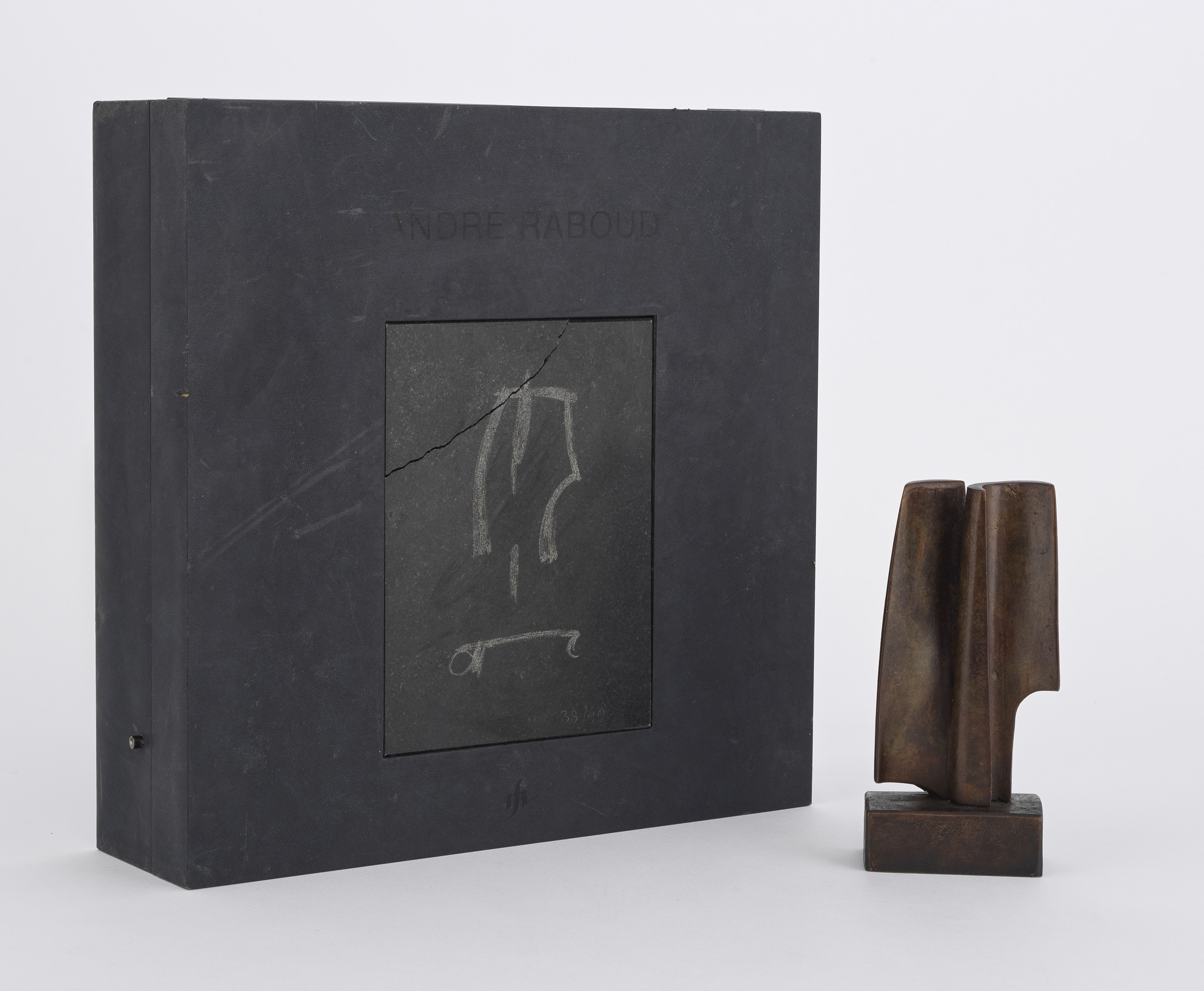 Sculpture abstraite, bronze à patine brune, numéroté 38/49, dans un coffret contenant le catalogue,, H 18,5 cm