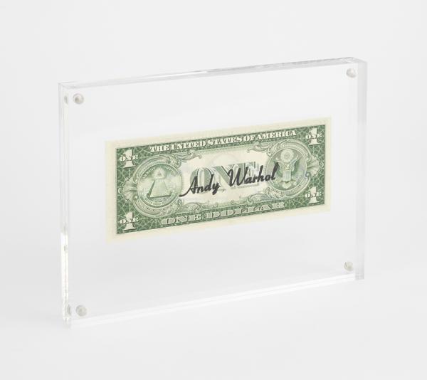 One dollar, billet R92554304, sous plexiglas, avec un certificat d'authenticité de la Galerie 32, 6,5x15,5 cm