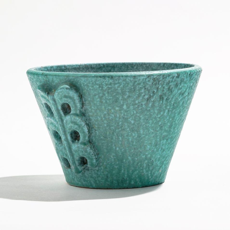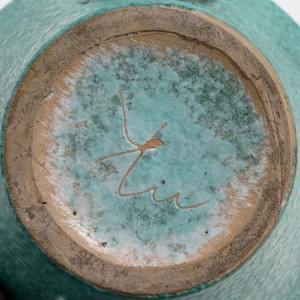 Cache-pot, céramique émaillée turquoise, signé sous la base, H 11 cm