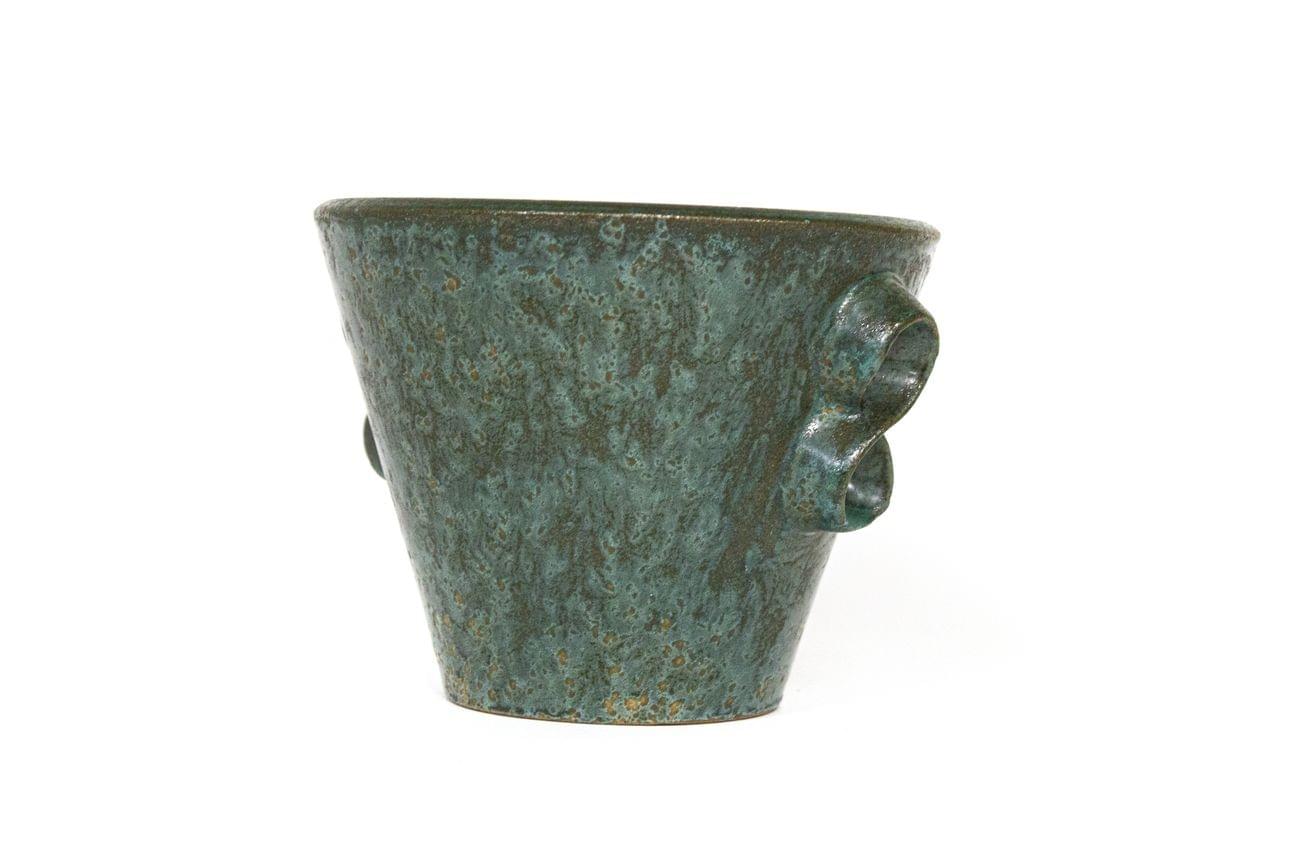 Cache-pot, céramique émaillée turquoise, signé sous la base, H 11 cm