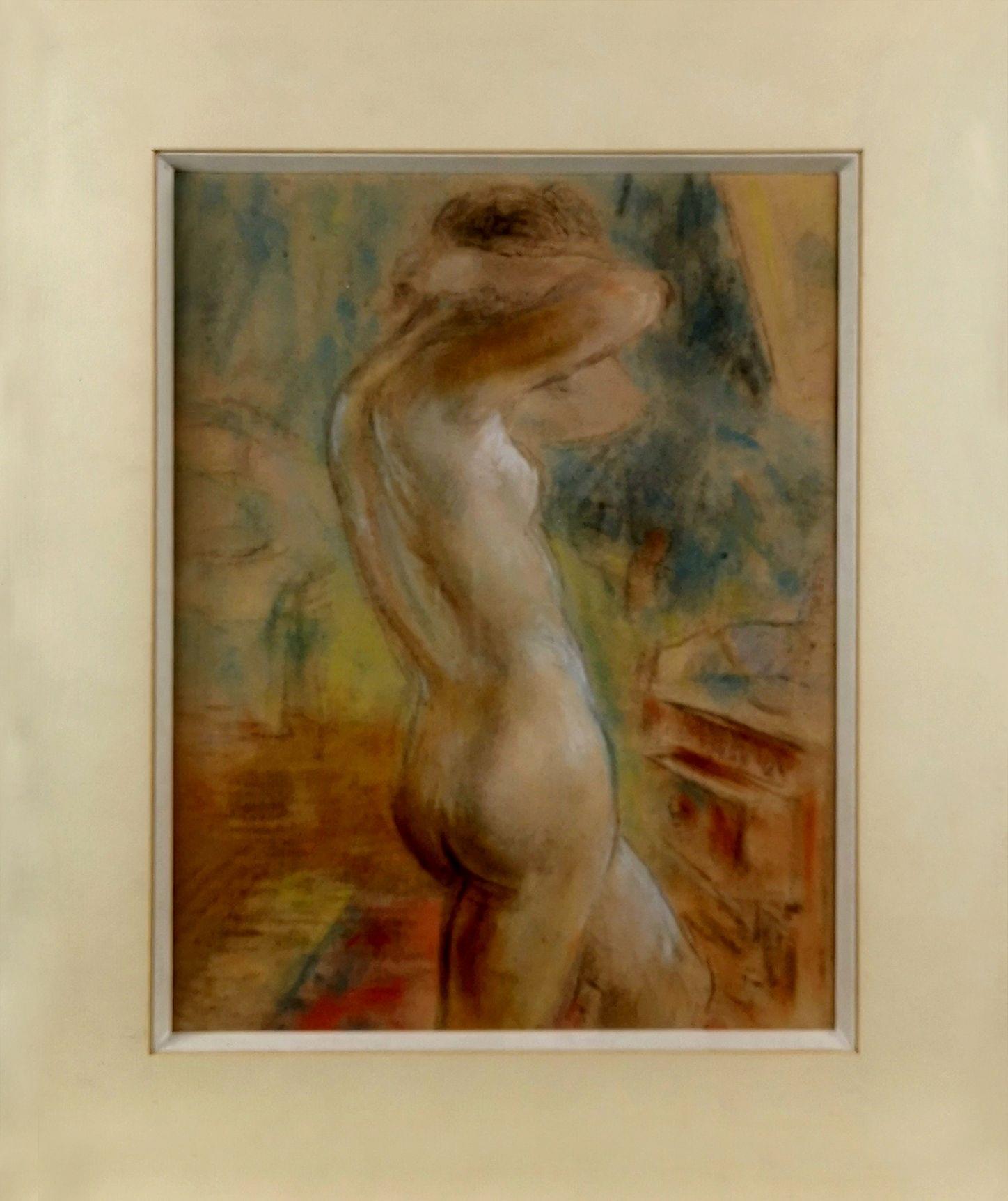 Femme nue de dos, pastel sur papier, 30x23 cm