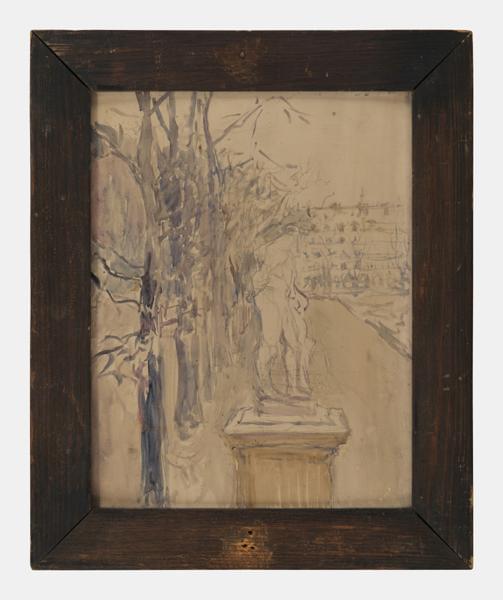 Statue d'Hercule au jardin des Tuileries, mine de plomb et aquarelle sur carton, 26x20 cm. Provenance: Famille de l'artiste