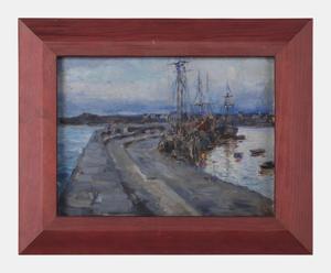 Bateaux au port, huile sur papier, datée 1892 au dos, 17x23 cm.Provenance: Famille de l'artiste.