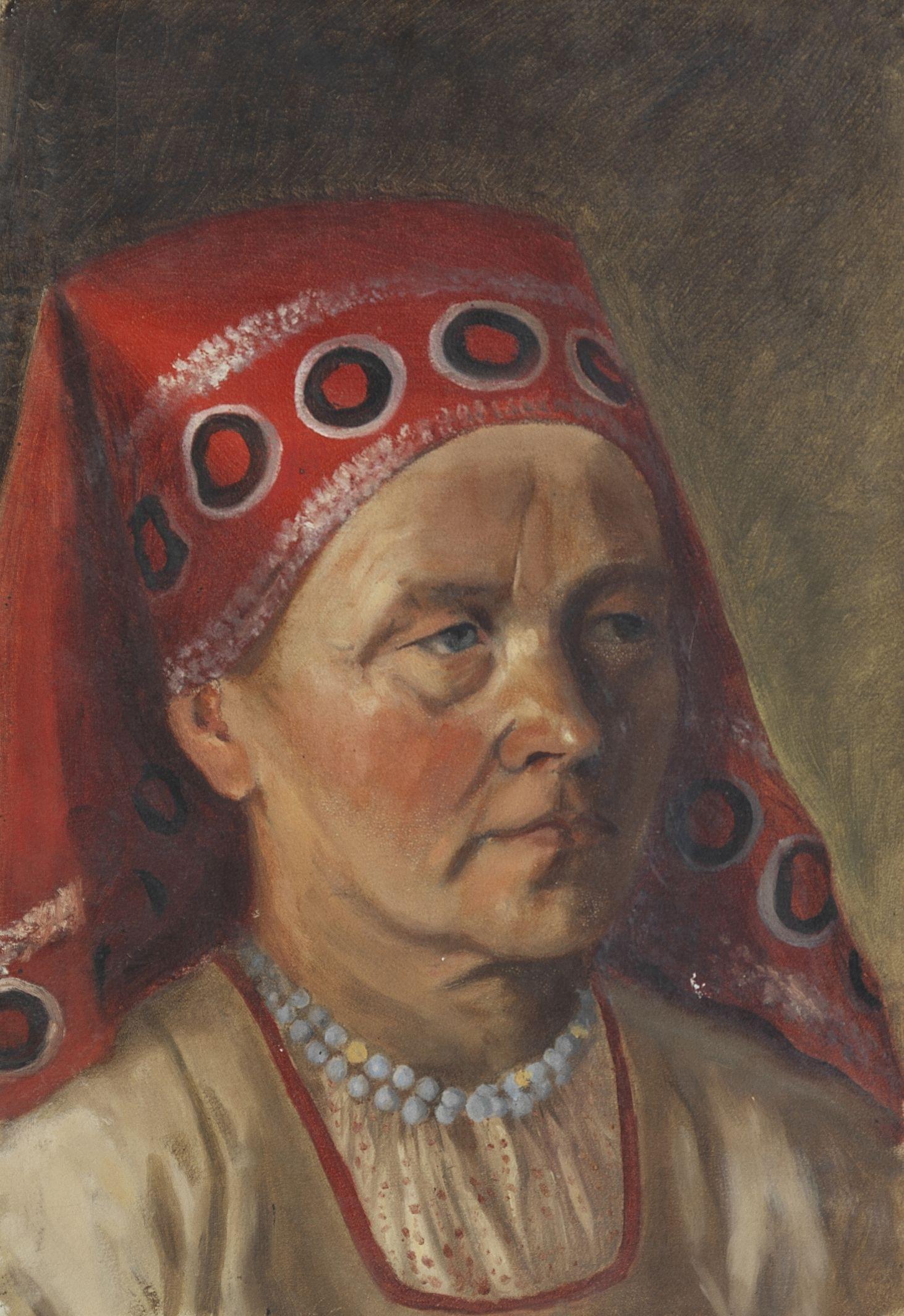 Paysane en costume traditionnel russe, huile sur toile, 35x25 cm.Provenance: Famille de l'artiste.