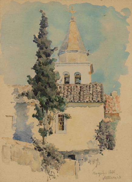 Clocher et datcha, deux aquarelles sur papier, la premier datée 1888, 17x12,5 et 13x16 cm. Provenance: Famille de l'artiste