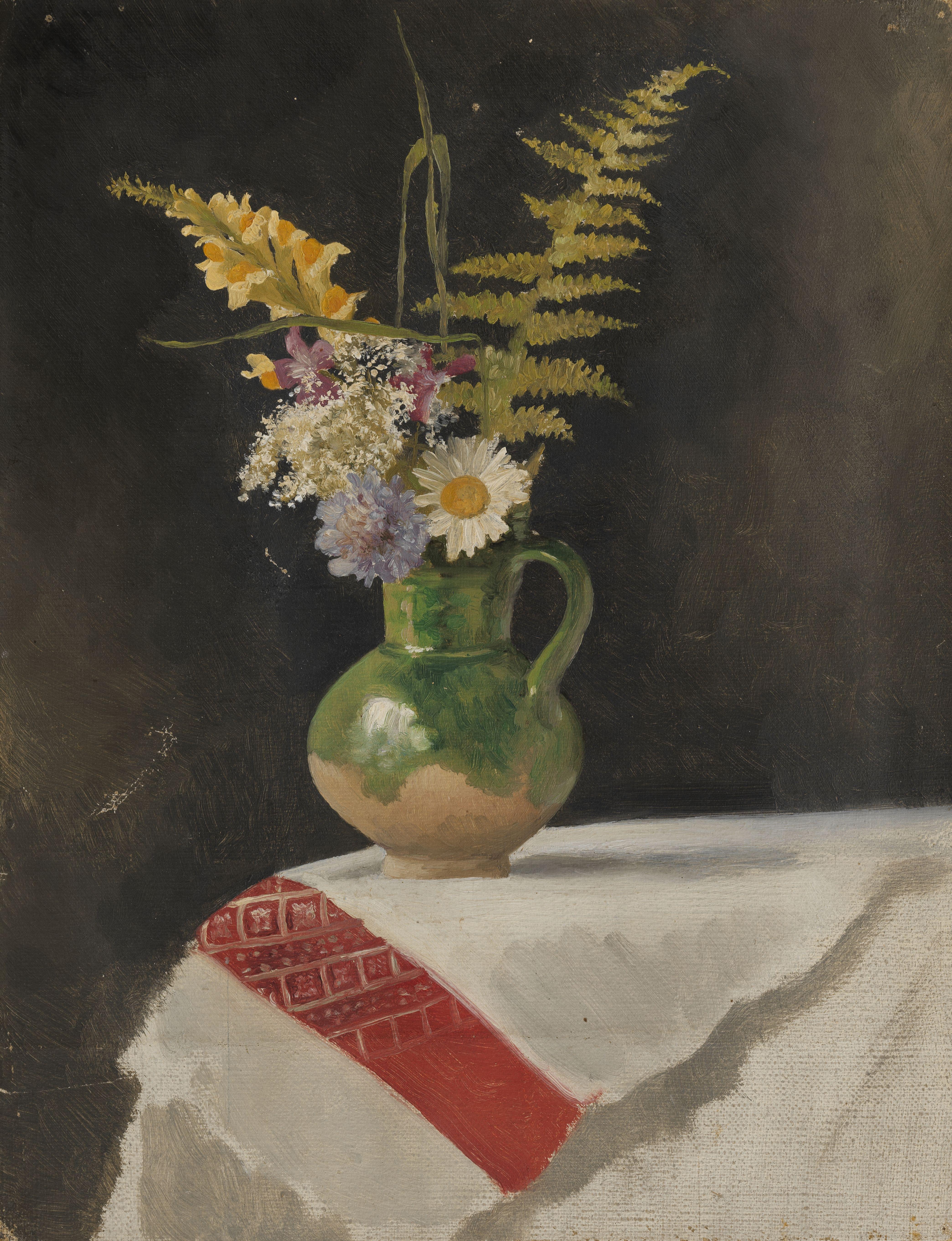 Bouquet champêtre dans un pot, huile sur toile marouflée sur carton, 28x21,5 cm. Provenance: Famille de l'artiste