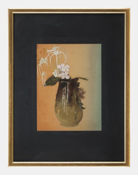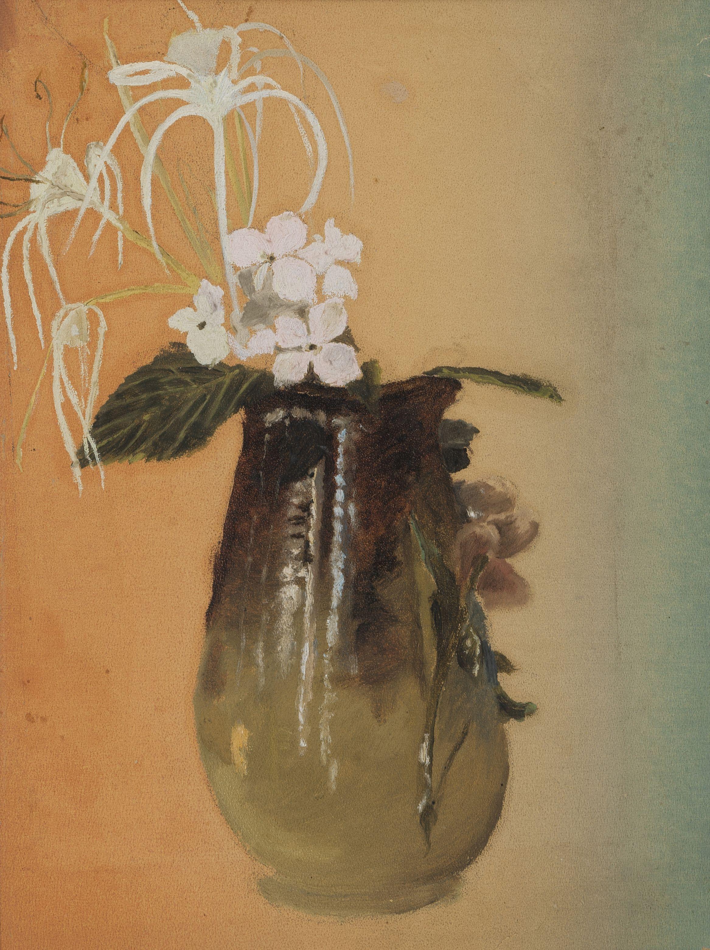 Bouquet de fleurs japonisant, huile sur carton, 23x17 cm. Provenance: Famille de l'artiste