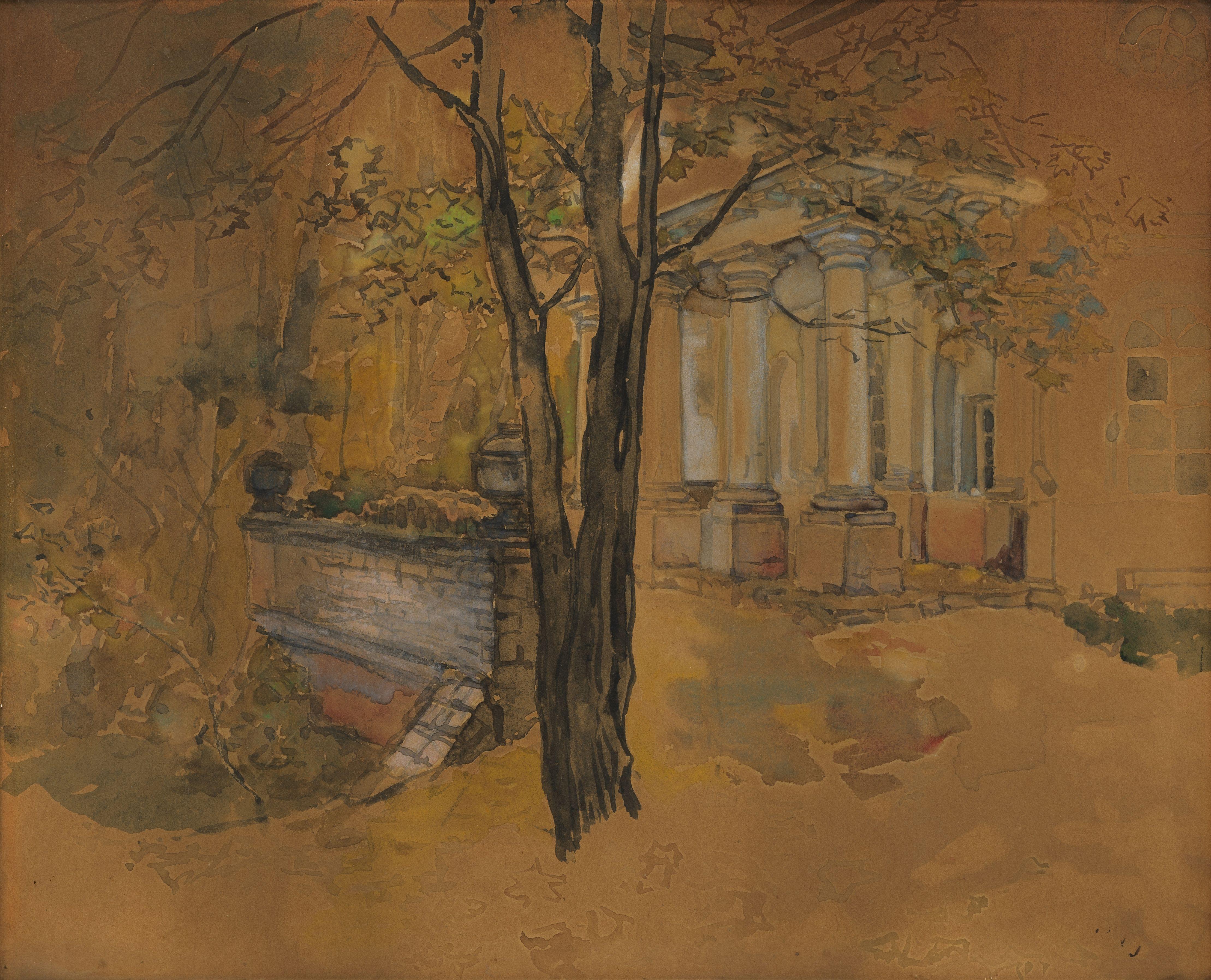 Portique de Cheremushki, aquarelle sur papier, 27x33 cm. Provenance: Famille de l'artiste