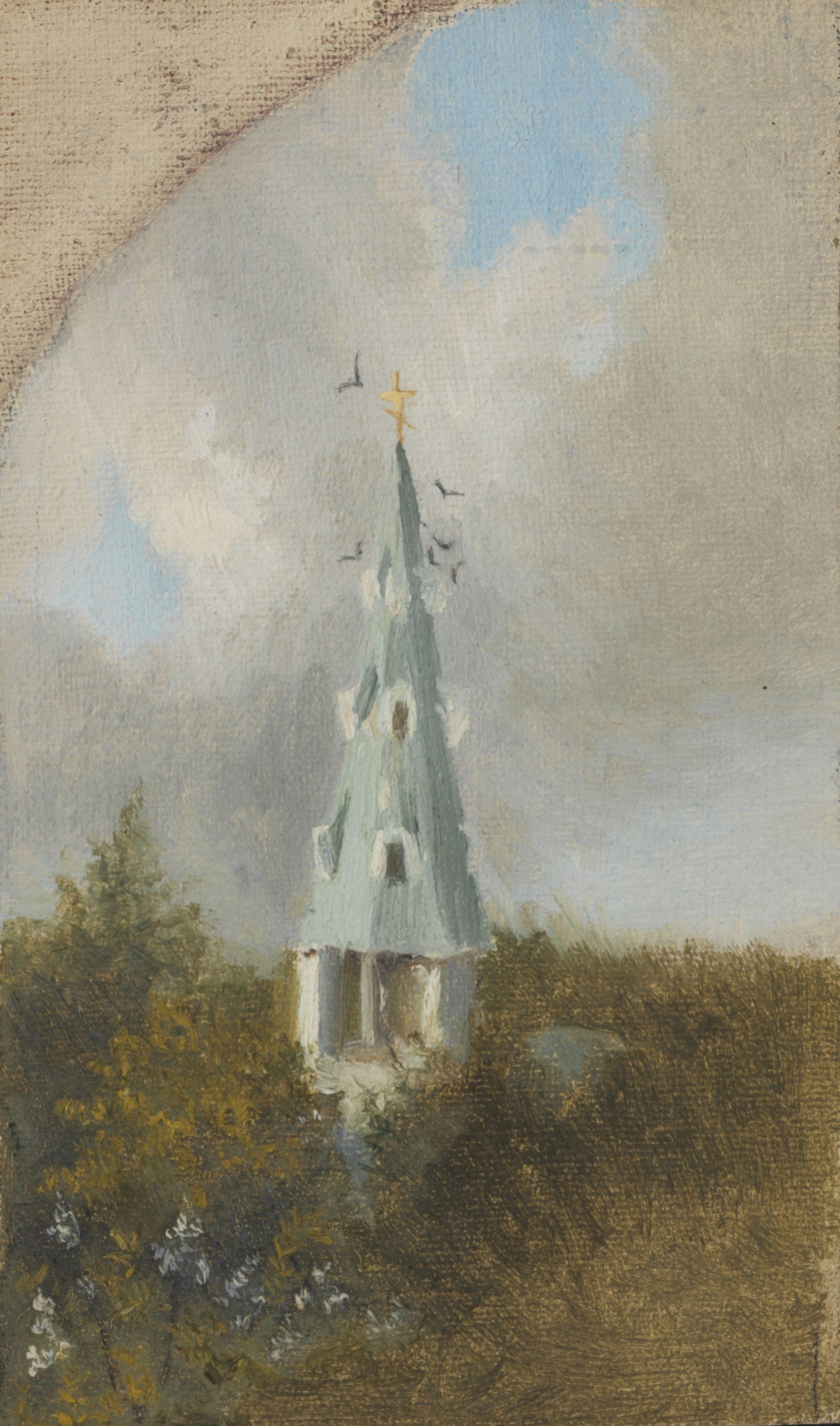 Clocher et village dans un paysage, trois huiles sur toile, 15,5x8,5, 16x13 et 7x10 cm. Provenance: Famille de l'artiste