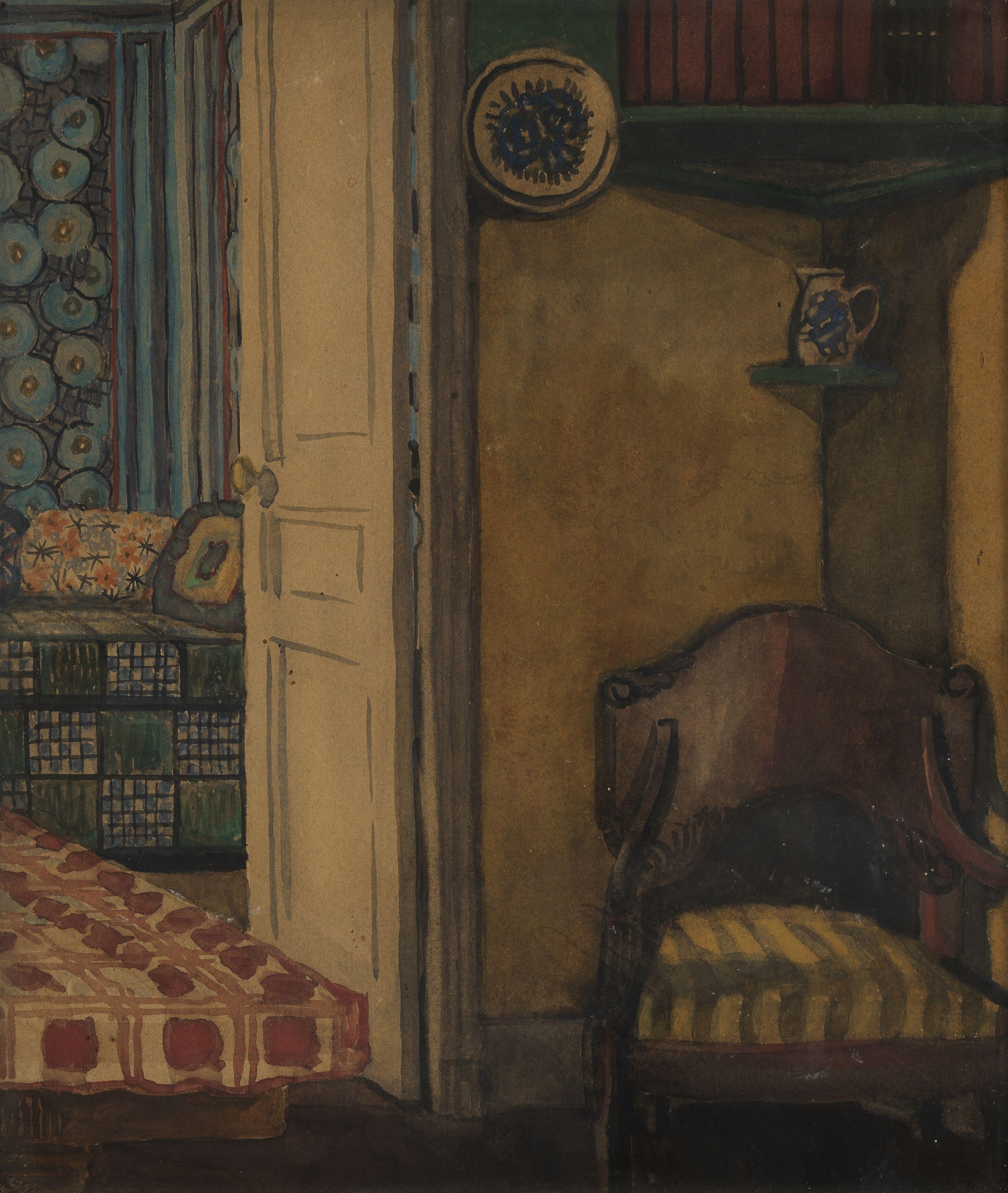 Intérieur russe, aquarelle sur papier, 23x20 cm. Provenance: Famille de l'artiste