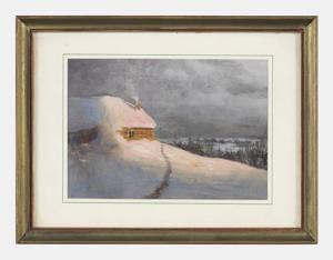 Paysage de neige, huile sur carton, 11x16 cm.Provenance: Famille de l'artiste.