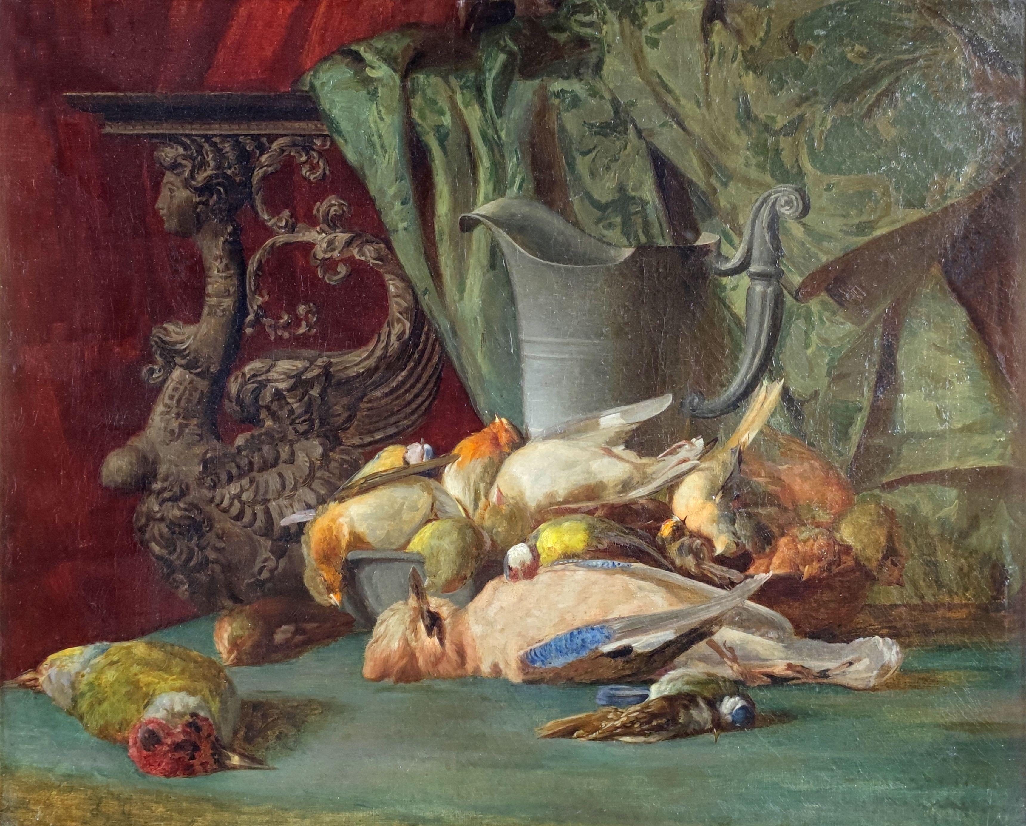 Nature morte au melon, huile sur panneau, monogrammée RAM, 46x62...