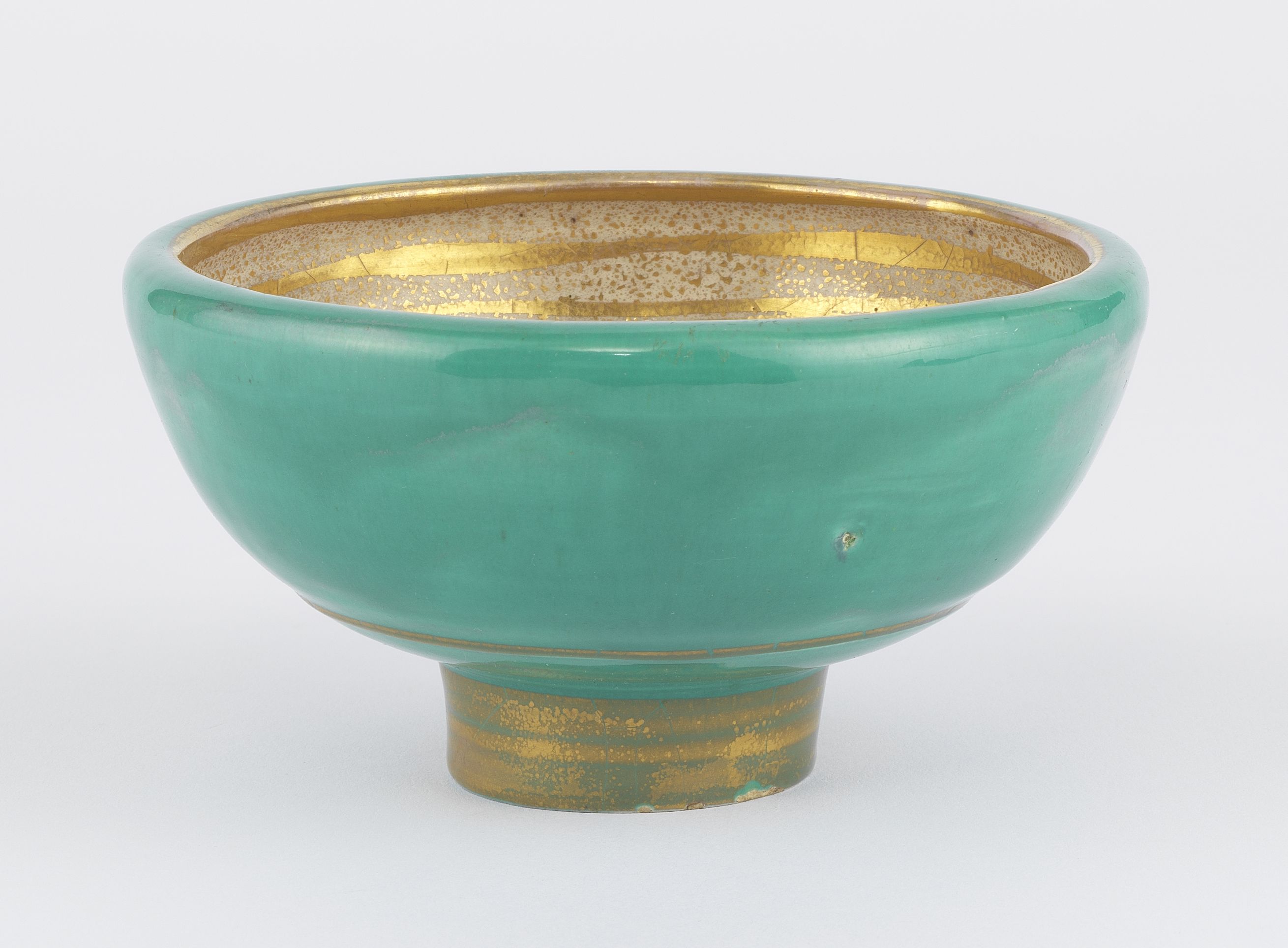 Coupe poisson, porcelaine émaillée polychrome et dorée sur fond turquoise, signée, D 11,5 cm. Provenance: Les Stern, une famille de collectionneurs.