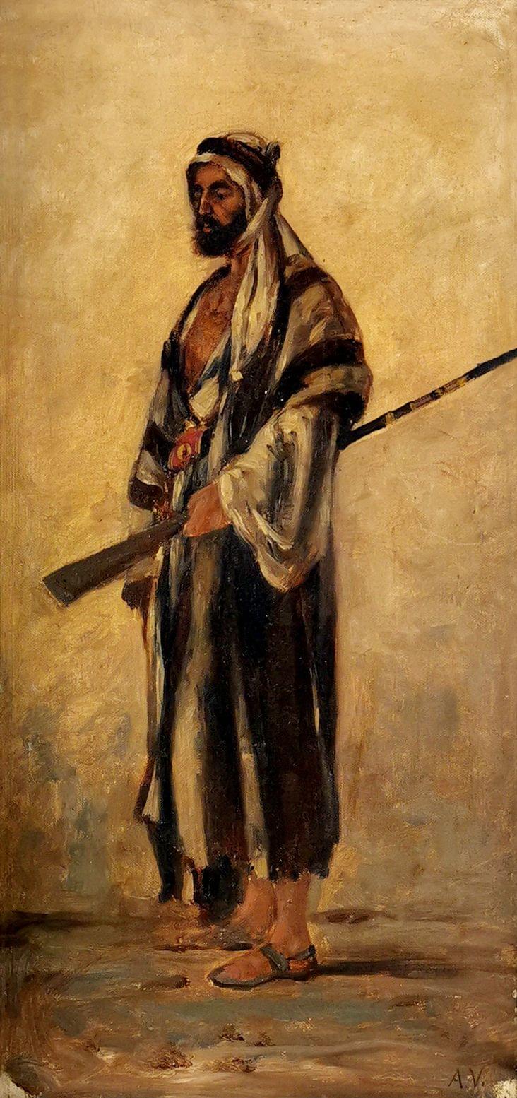 Caravane dans le désert, aquarelle sur papier, non signée, 7,5x2...