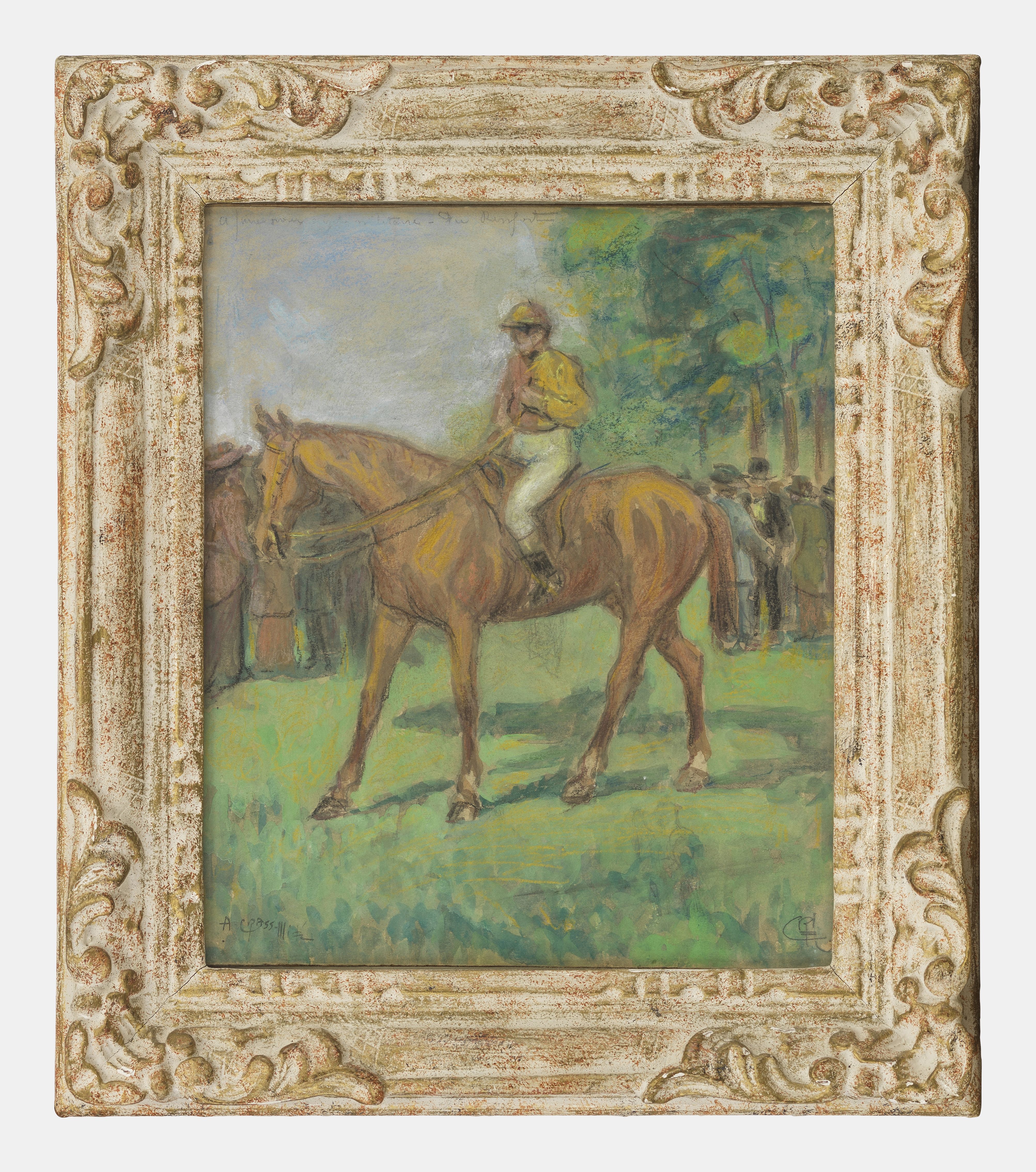 Jockey, technique mixte sur papier, signée, 28x24 cm. Provenance Galerie Montauti