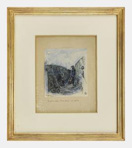 Les premières tranchées, aquarelle sur papier, monogrammée, signée et datée 14, 11x12 cm