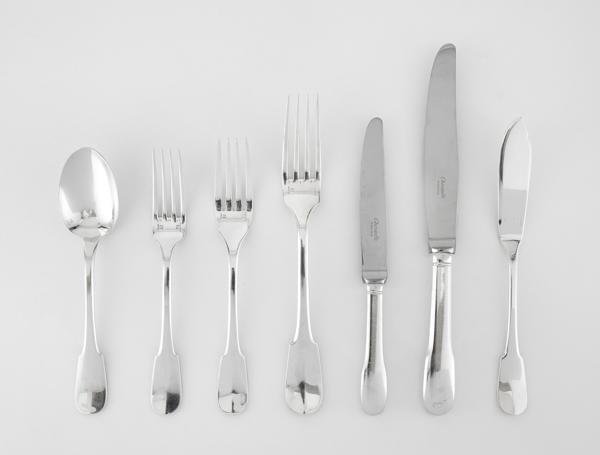 Christofle, métal argenté, comprenant: 12 fourchettes, 12 coutea...