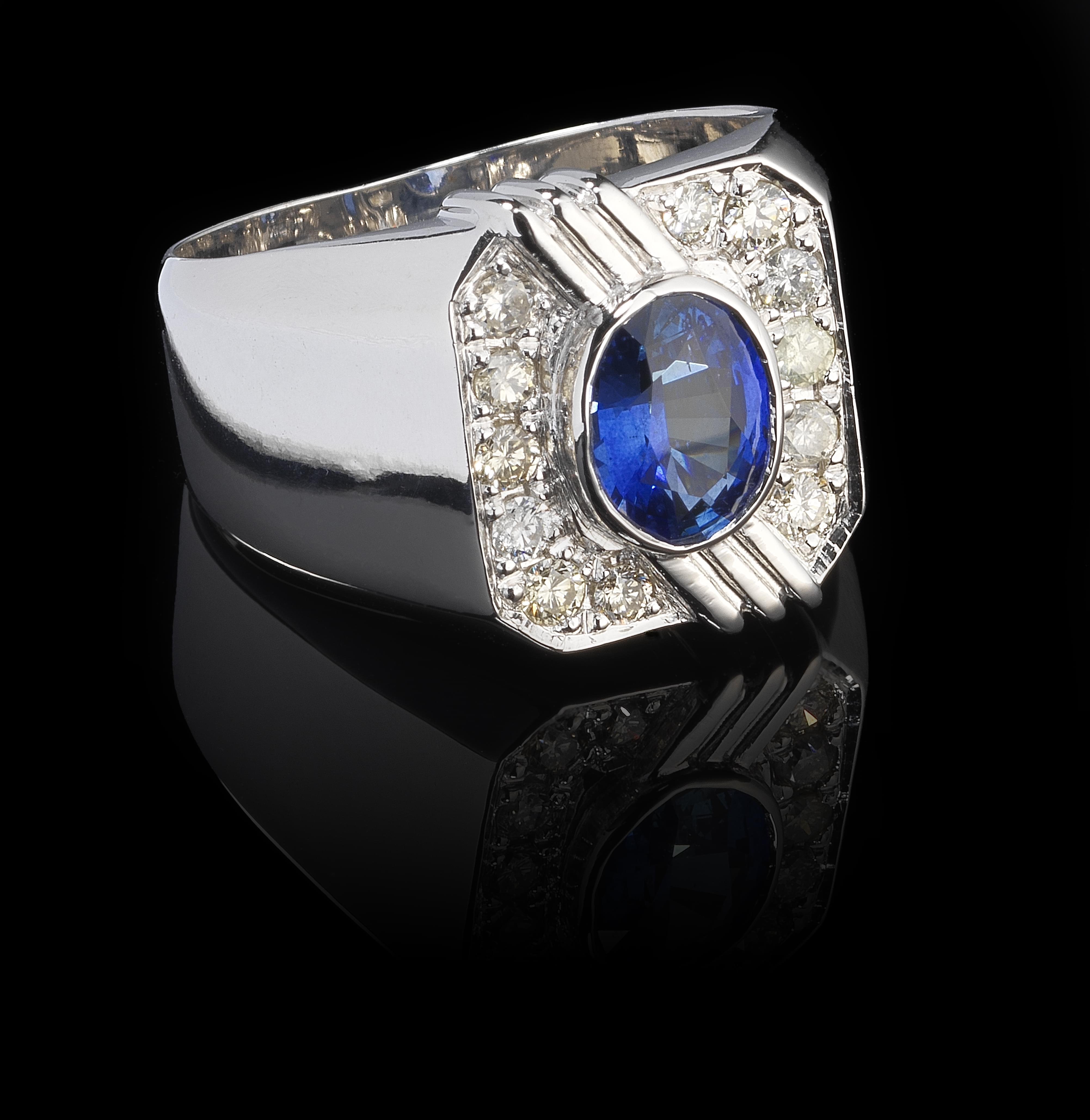 3410. Bague chevalière à plateau octogonale sertie d'un saphir taille ovale (1,45 ct)