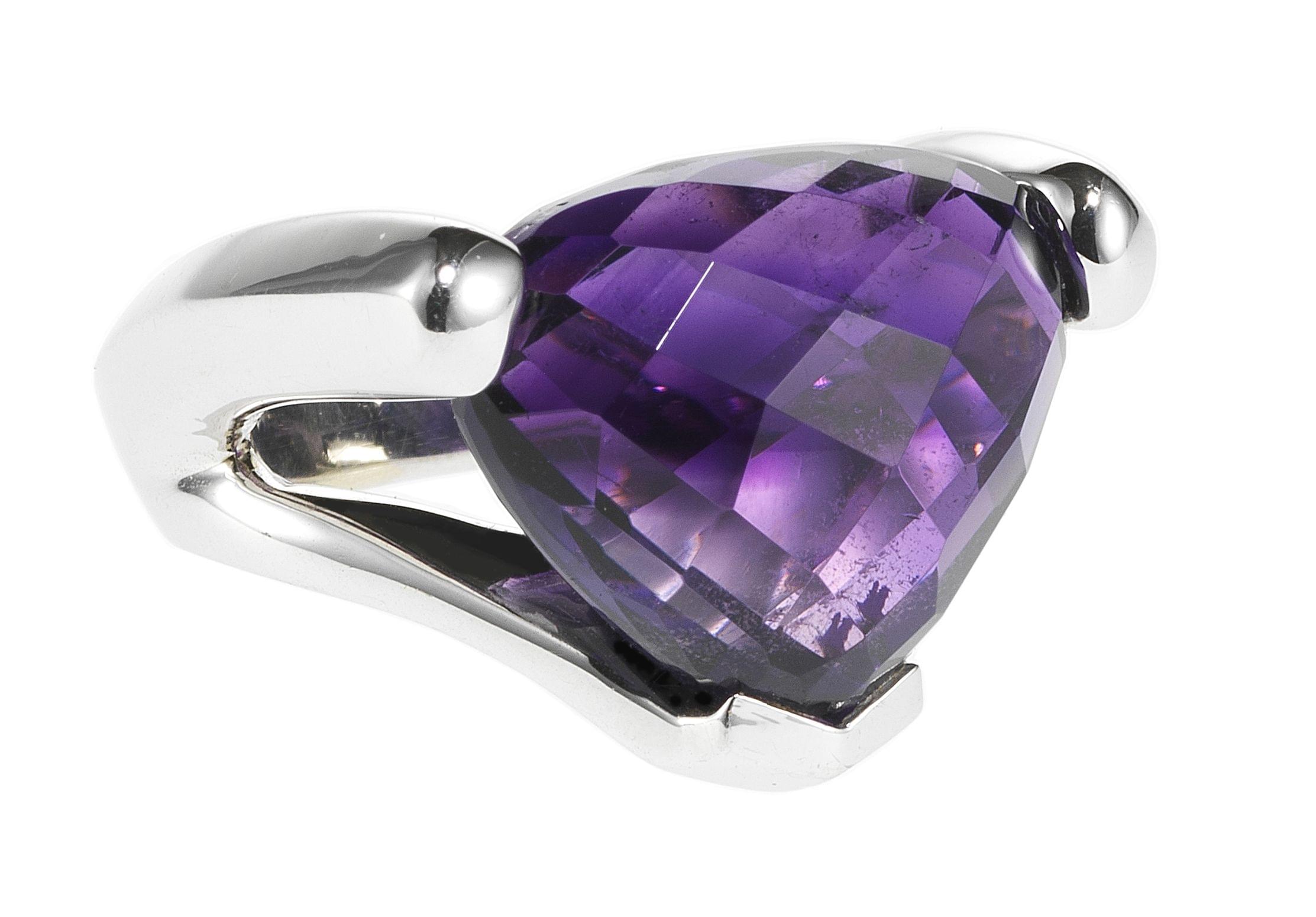 3337. Bague design sertie d'une améthyste taille fantaisie facettée