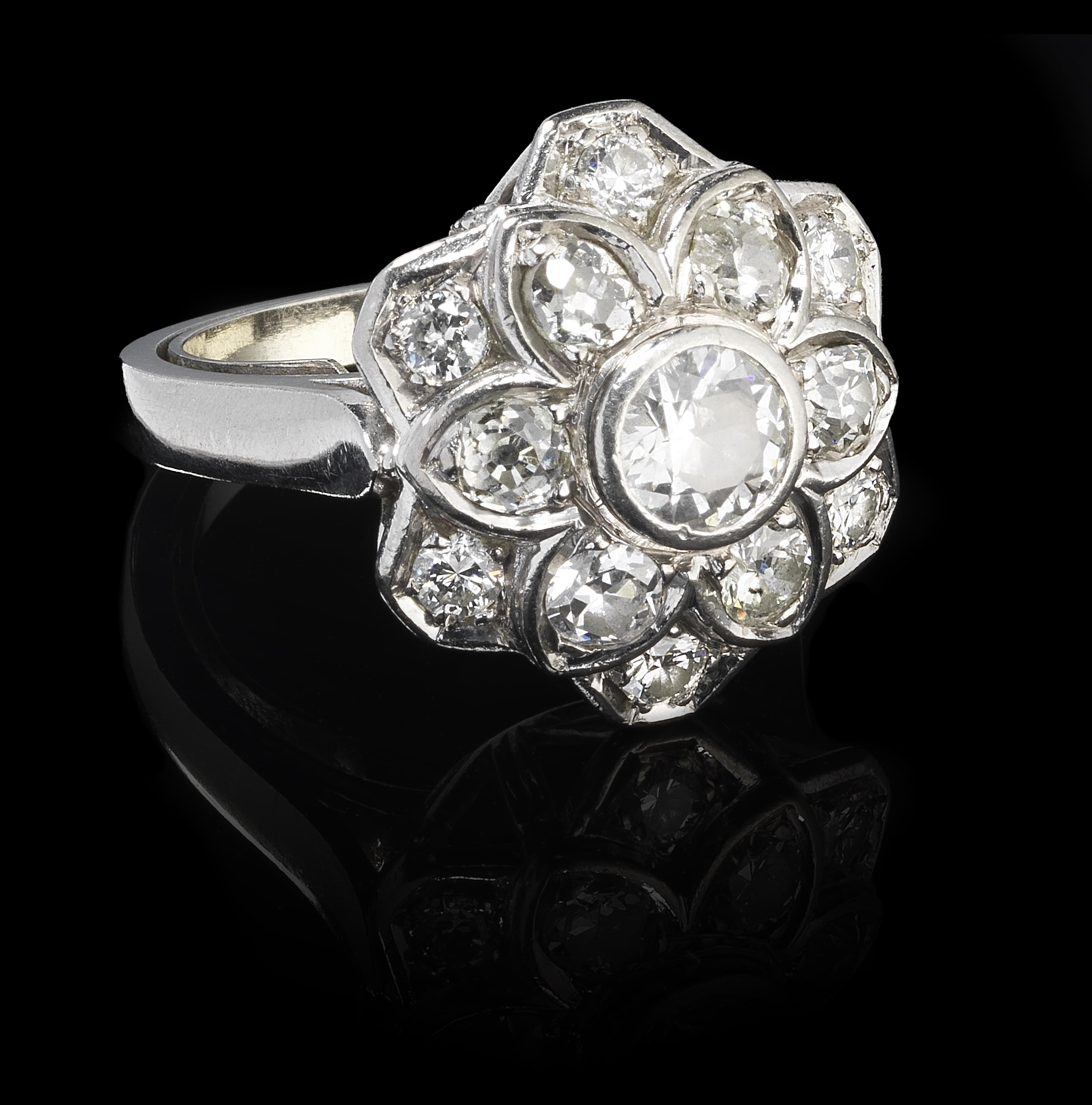 3529. Bague fleur centrée d'un diamant (env. 0,6 ct)