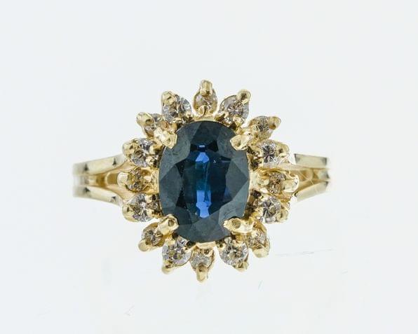 3113. Bague marguerite sertie d'un saphir (env. 1.1 ct) entouré de diamants